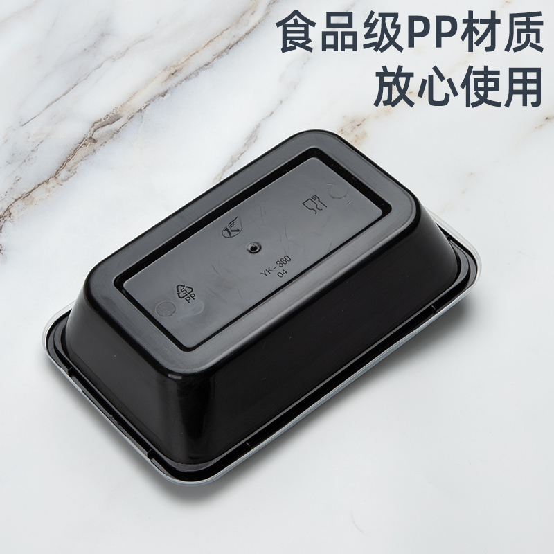350ml一次性外卖快餐盒小份菜打包盒黑色塑料长方形带盖小菜专用