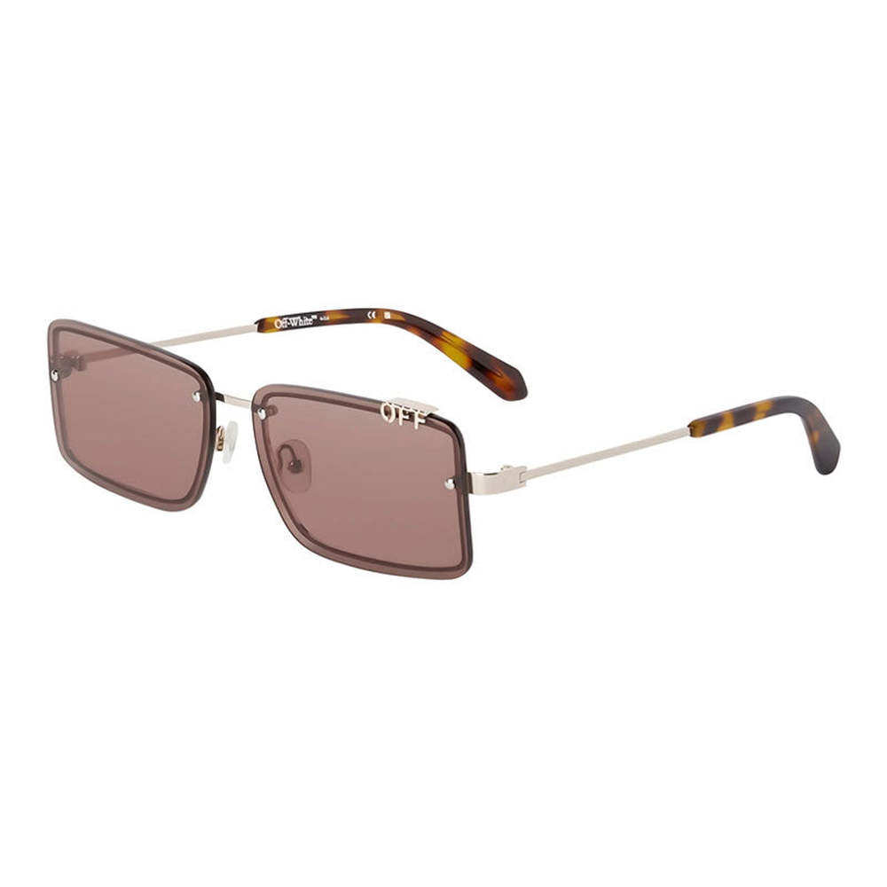 自营off-white米白色无框矩形太阳镜,炮铜框架和蓝色镜片Oeri13N