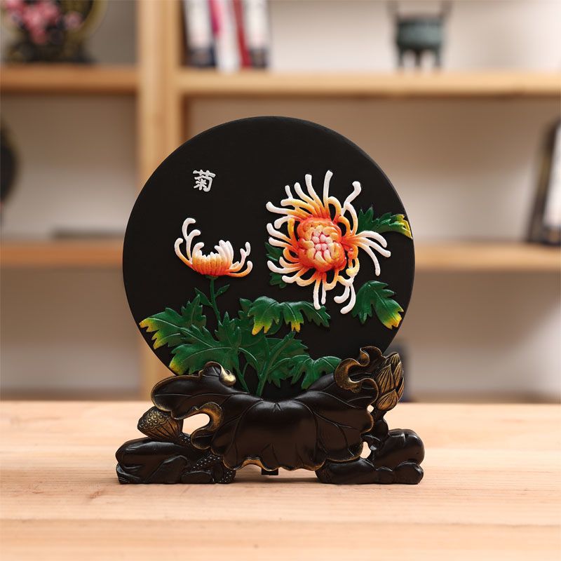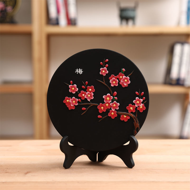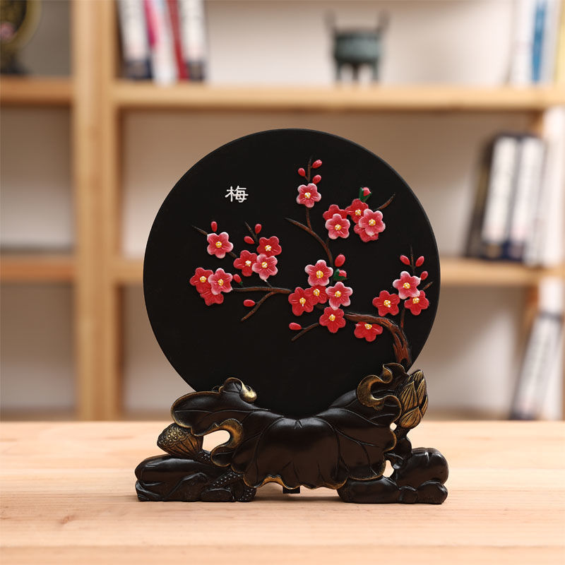 梅兰竹菊书桌玄关电视柜摆件卧室创意家居炭雕工艺品办公室新中式