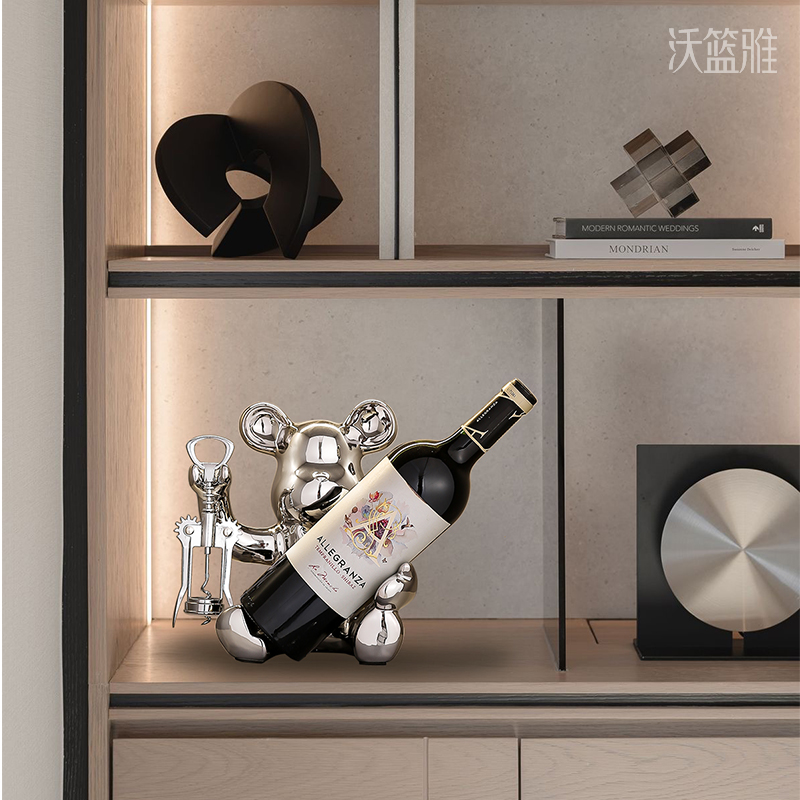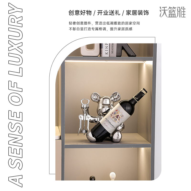 暴力熊红酒架摆件轻奢高档家居客厅餐边柜玻璃柜酒柜装饰品高级感