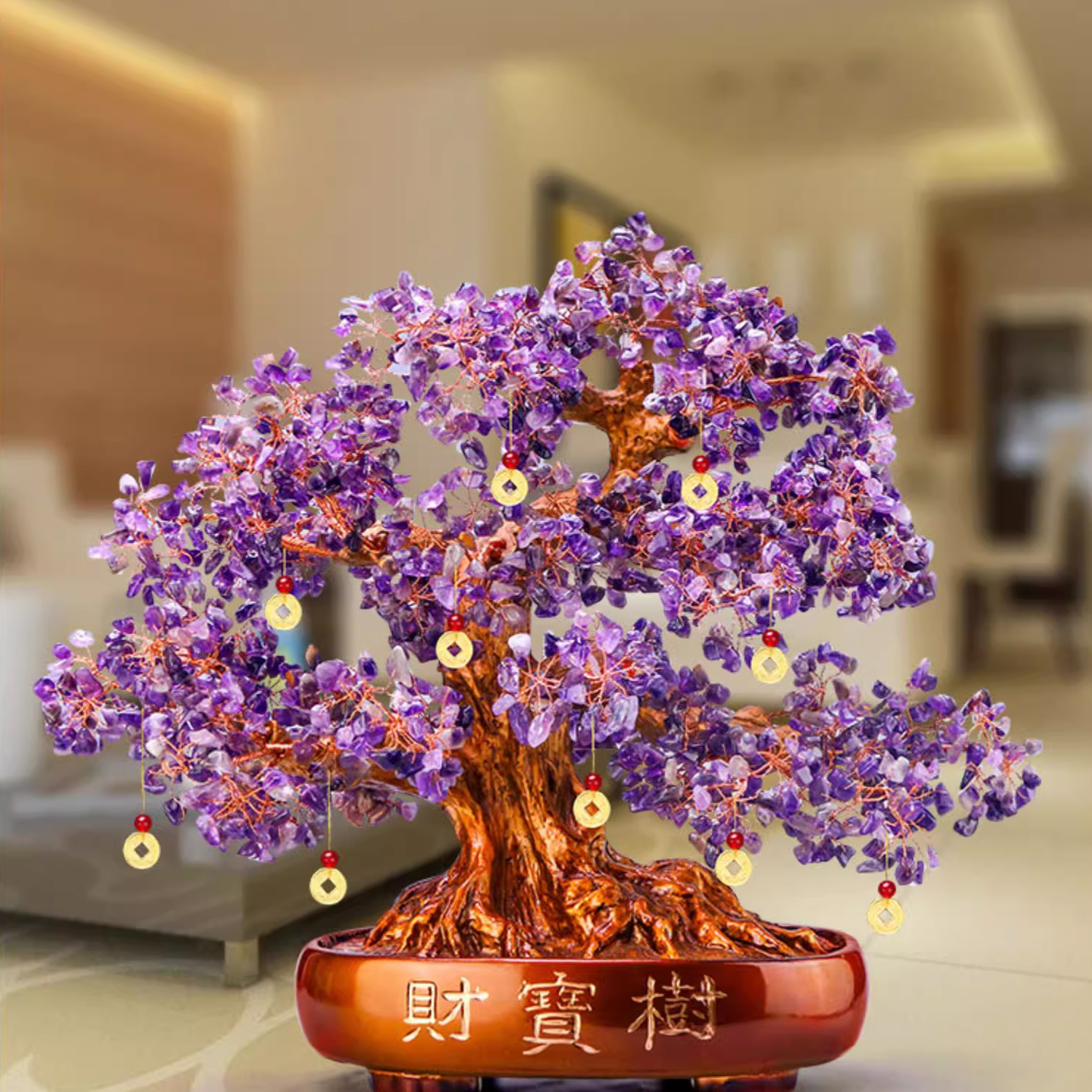 天然黄水晶发财树摇钱树家居客厅大号办公酒柜装饰品摆件开业礼品