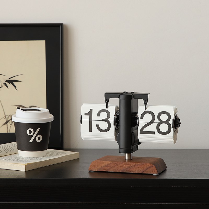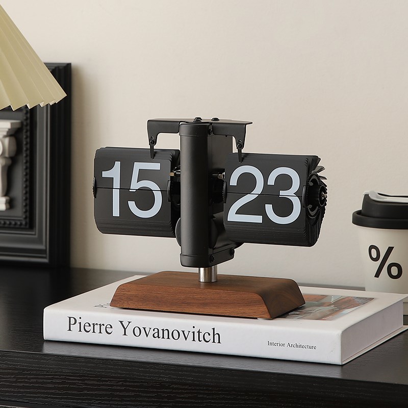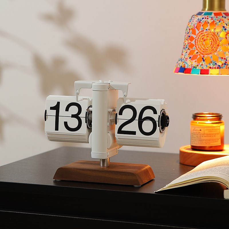 自动翻页时钟桌面摆件轻奢复古机械表摆K台式客厅电视柜装饰品摆