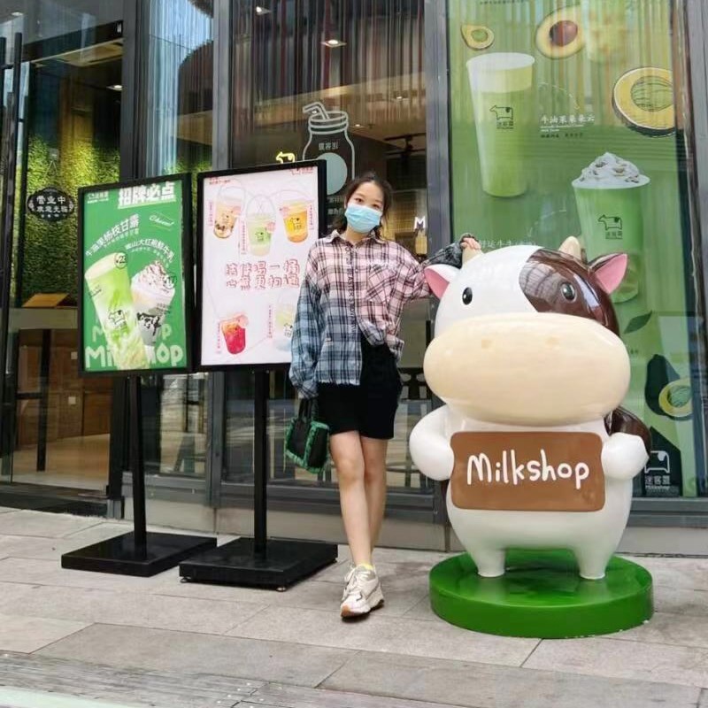 玻璃钢卡通奶牛雕塑奶茶店开业迎宾装饰美陈动物模型落地摆件定制