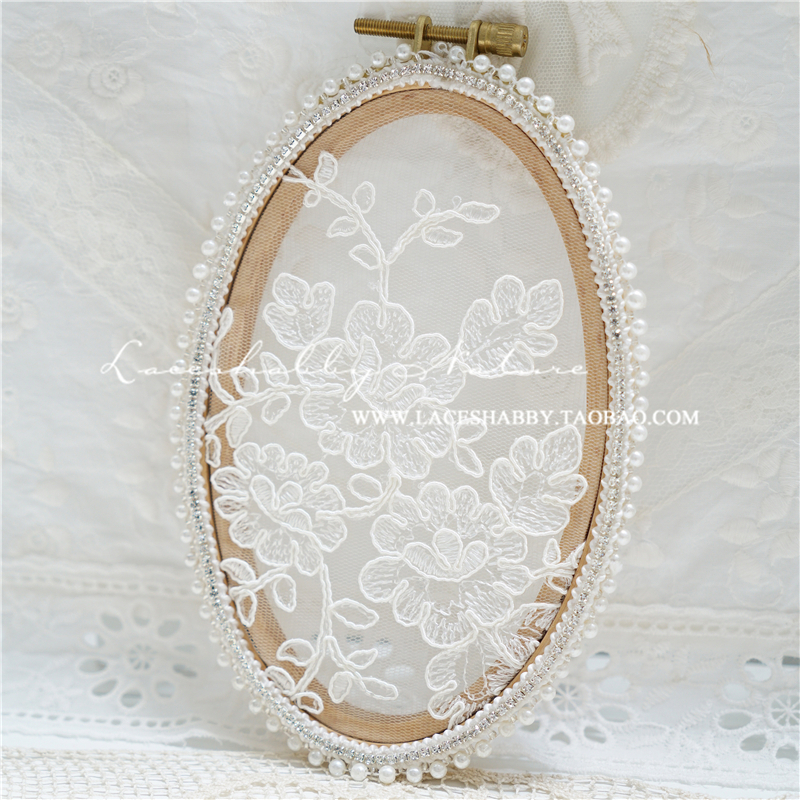 BU复古法式清新蕾丝刺绣珍珠镶钻手工首饰收纳公主壁挂托盘摆件