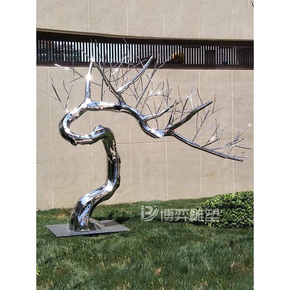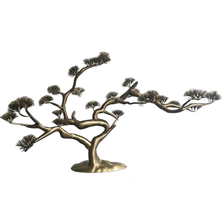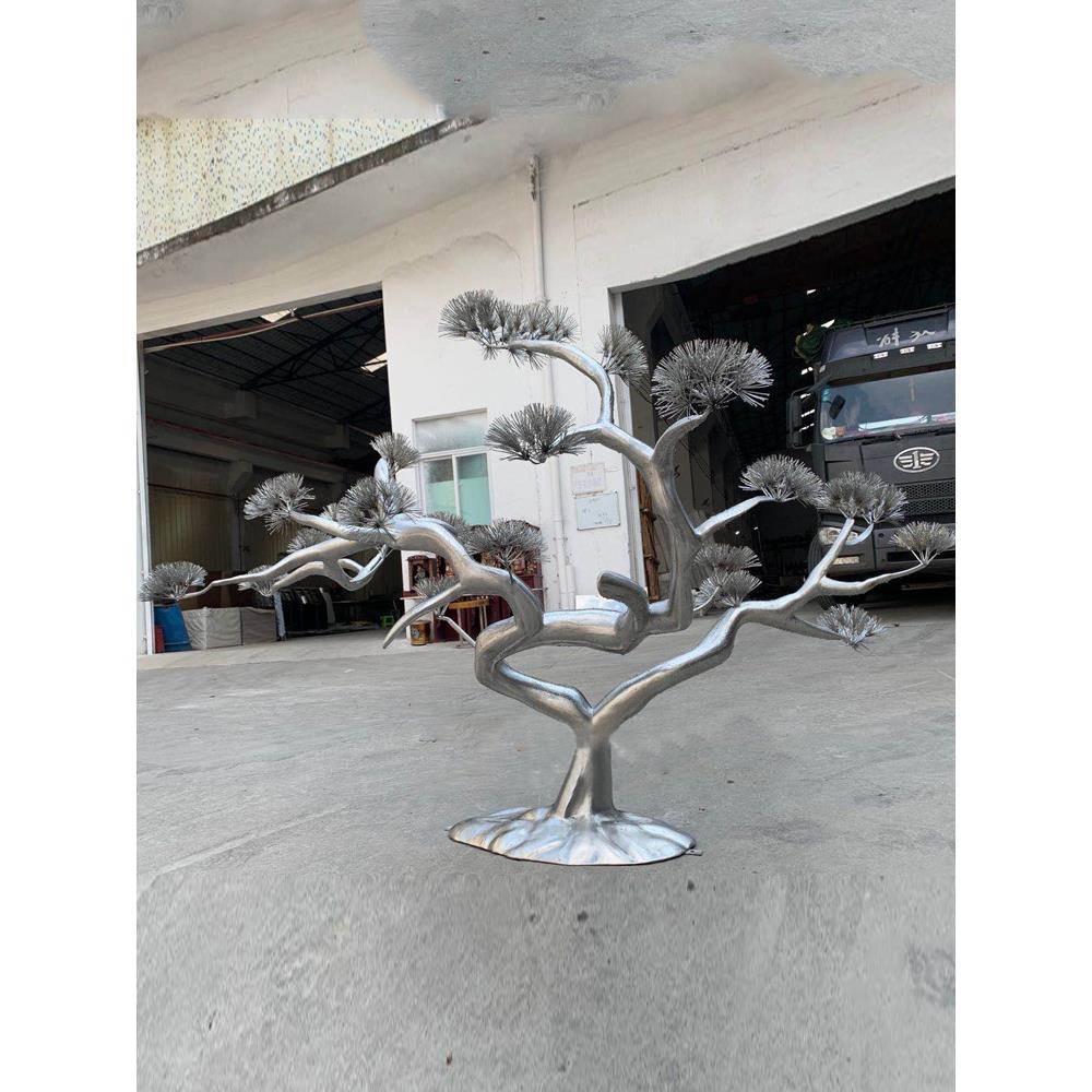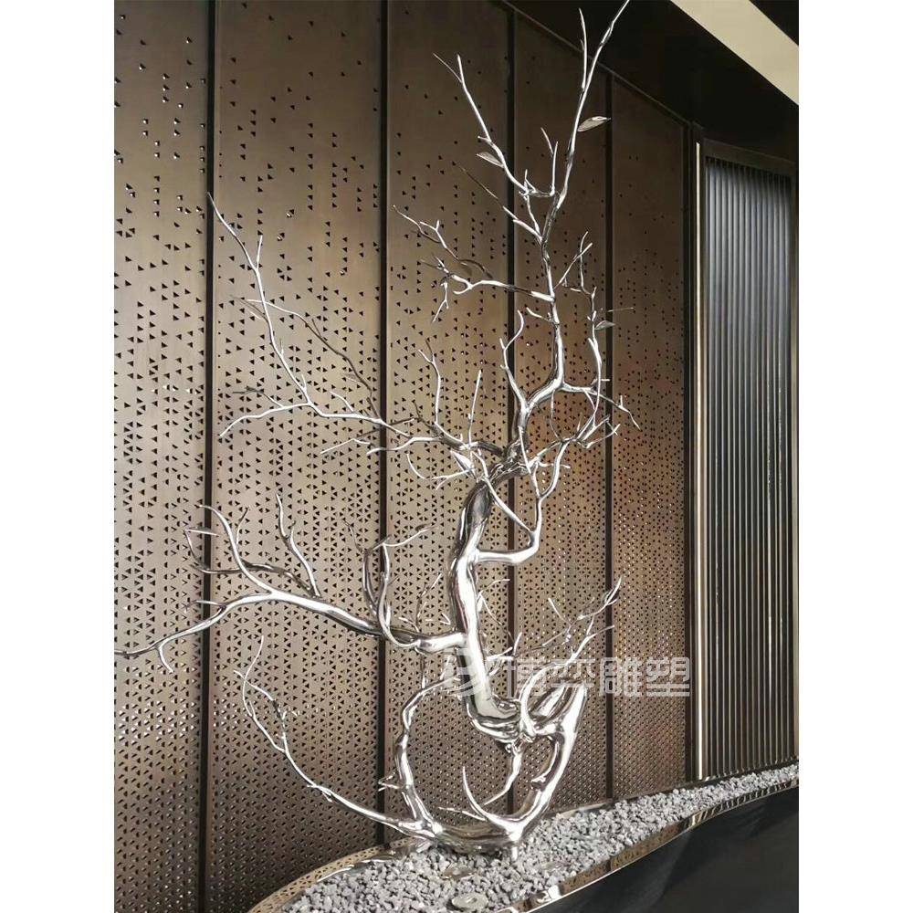 不锈钢迎客松雕塑定制镜面金属抽象松树装饰酒店玄关水景观摆件