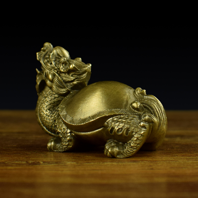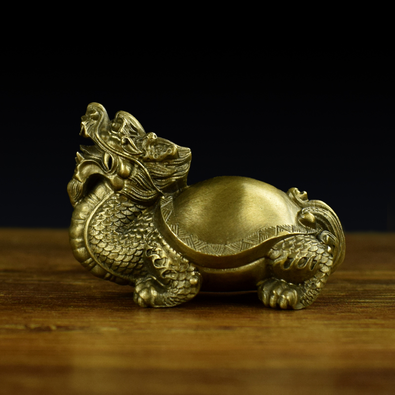 铜实心龙龟把玩手把件办公桌霸下小摆件茶宠镇纸家居Z家饰工艺品