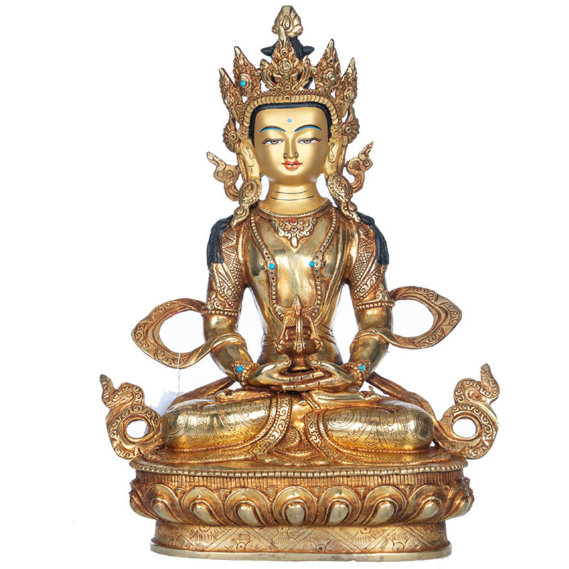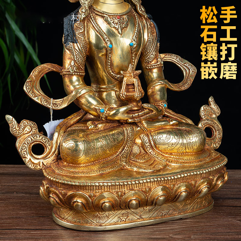 《长寿佛》藏式尼泊尔手工10寸铜《常寿佛》全鎏金家居摆件