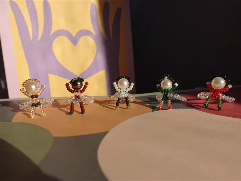 日韩创意卡通手工米珠趣味立体小人锁骨链、耳饰 休闲 可爱