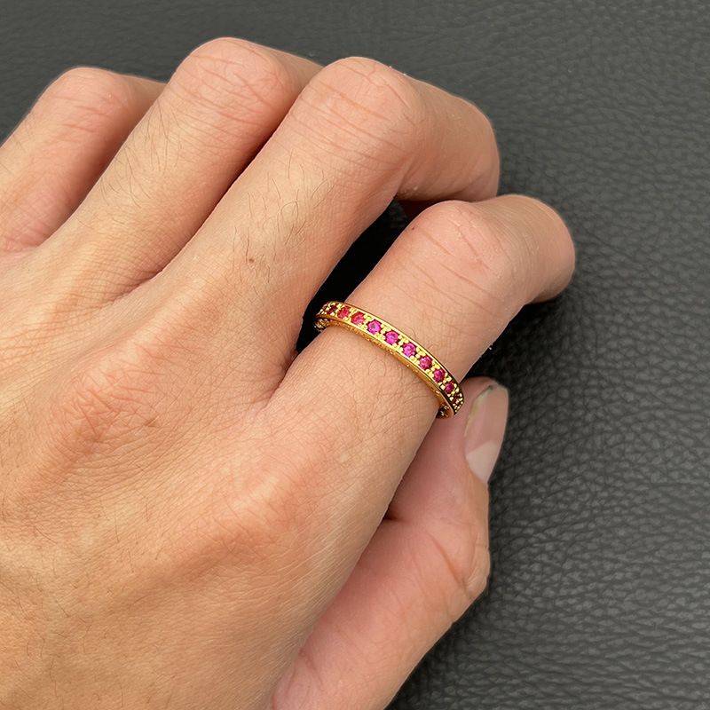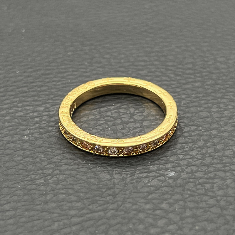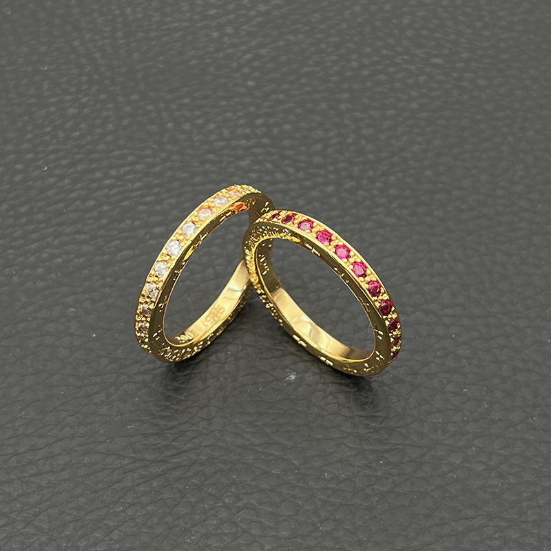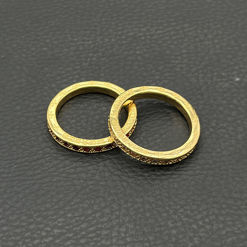 s925纯银克罗伈22K金色3MM满钻戒指男女十字架情侣款对戒叠戴尾戒