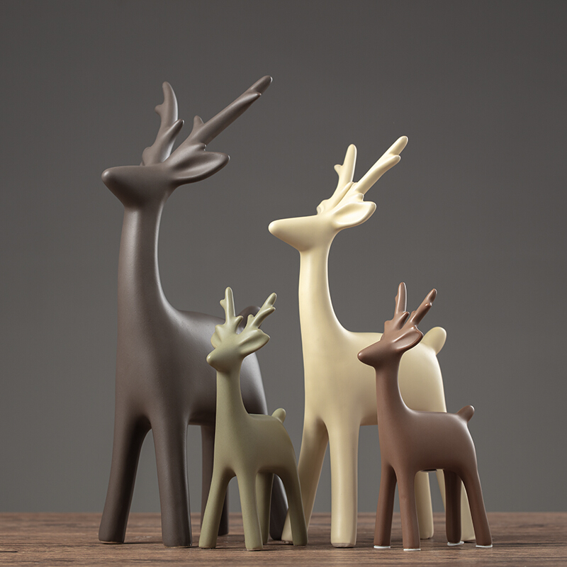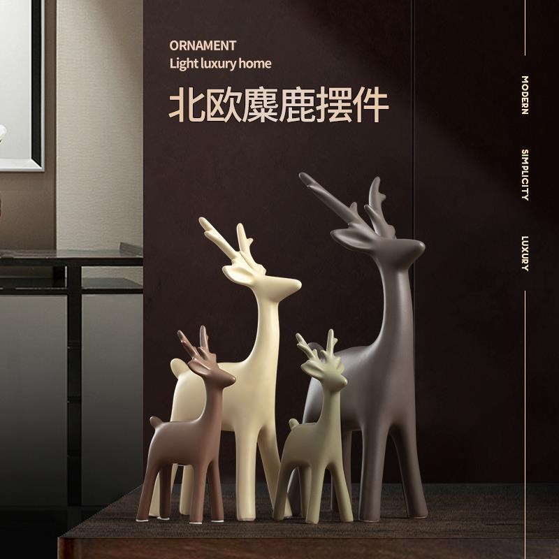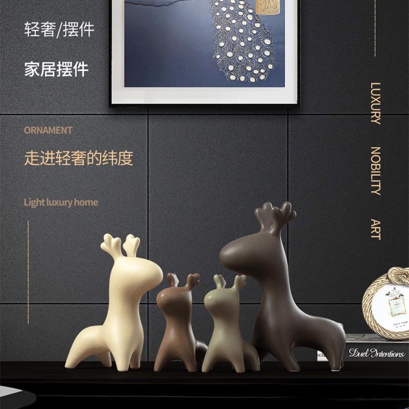 北欧现代简约家居摆饰客厅玄关电视酒H柜办公室装饰品麋鹿四口摆
