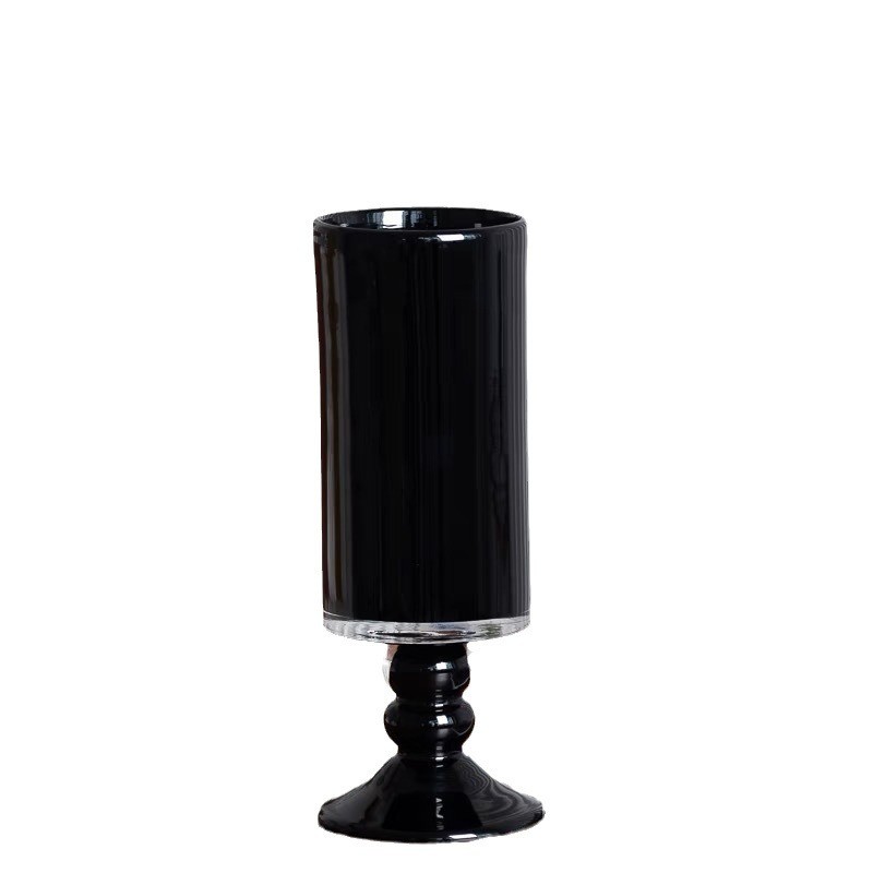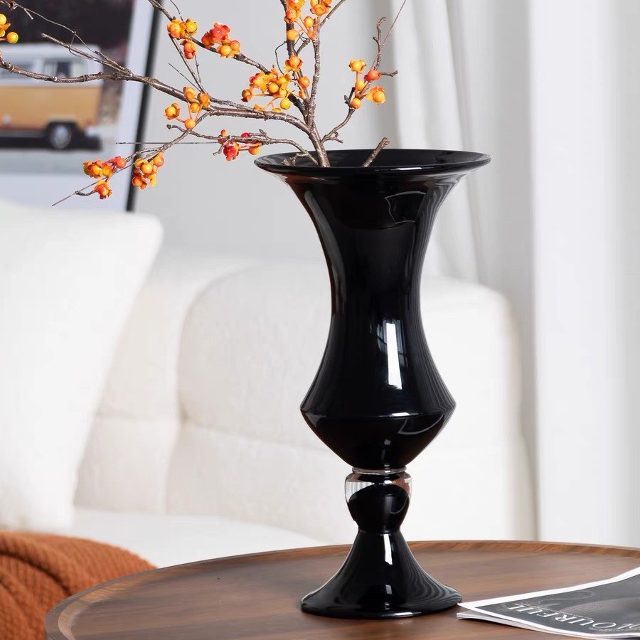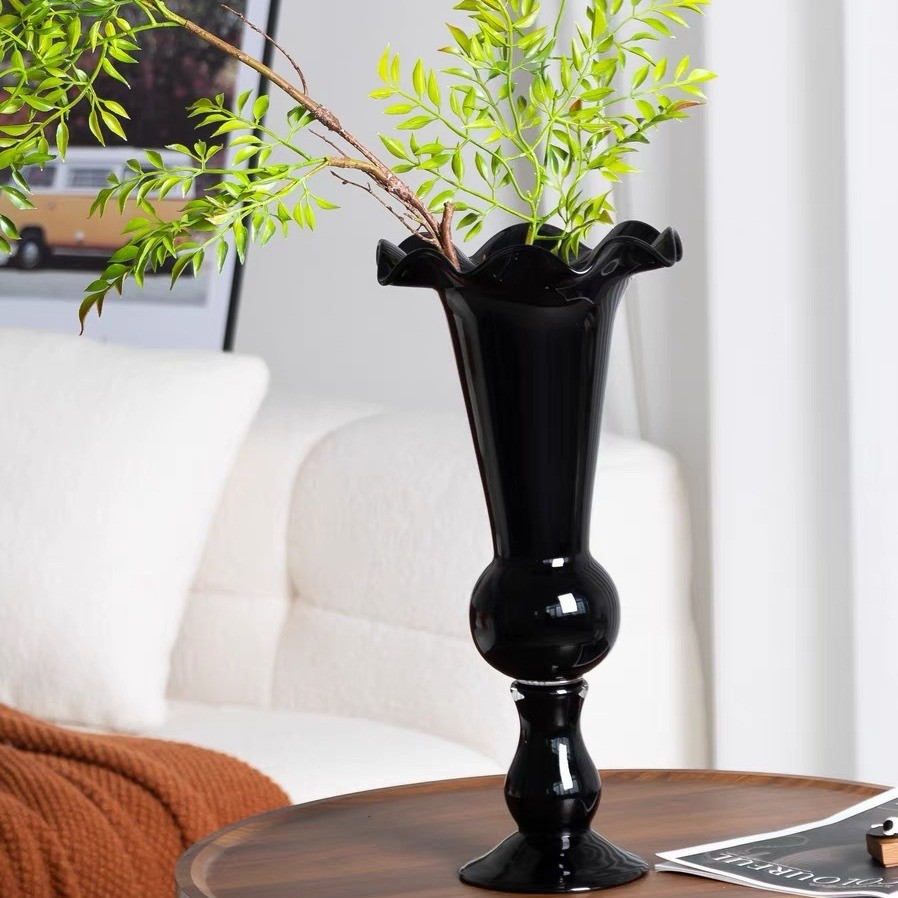 热销中古复古摆件黑色琉璃高脚花瓶玻璃花器简约装饰样板间插花风