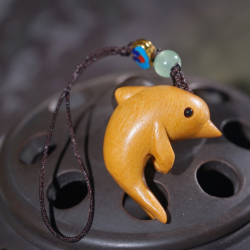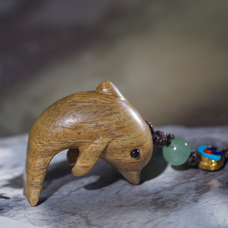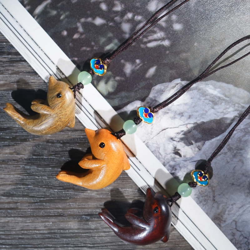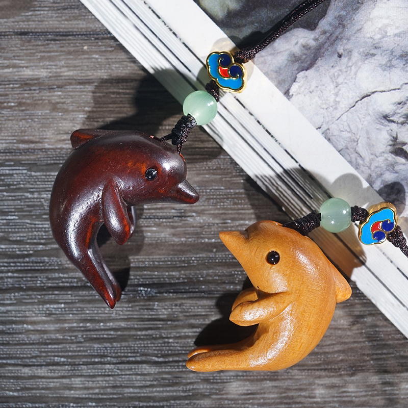 檀木小海豚汽车钥匙扣吊坠原创个性钥匙挂件文玩可爱手机链坠饰
