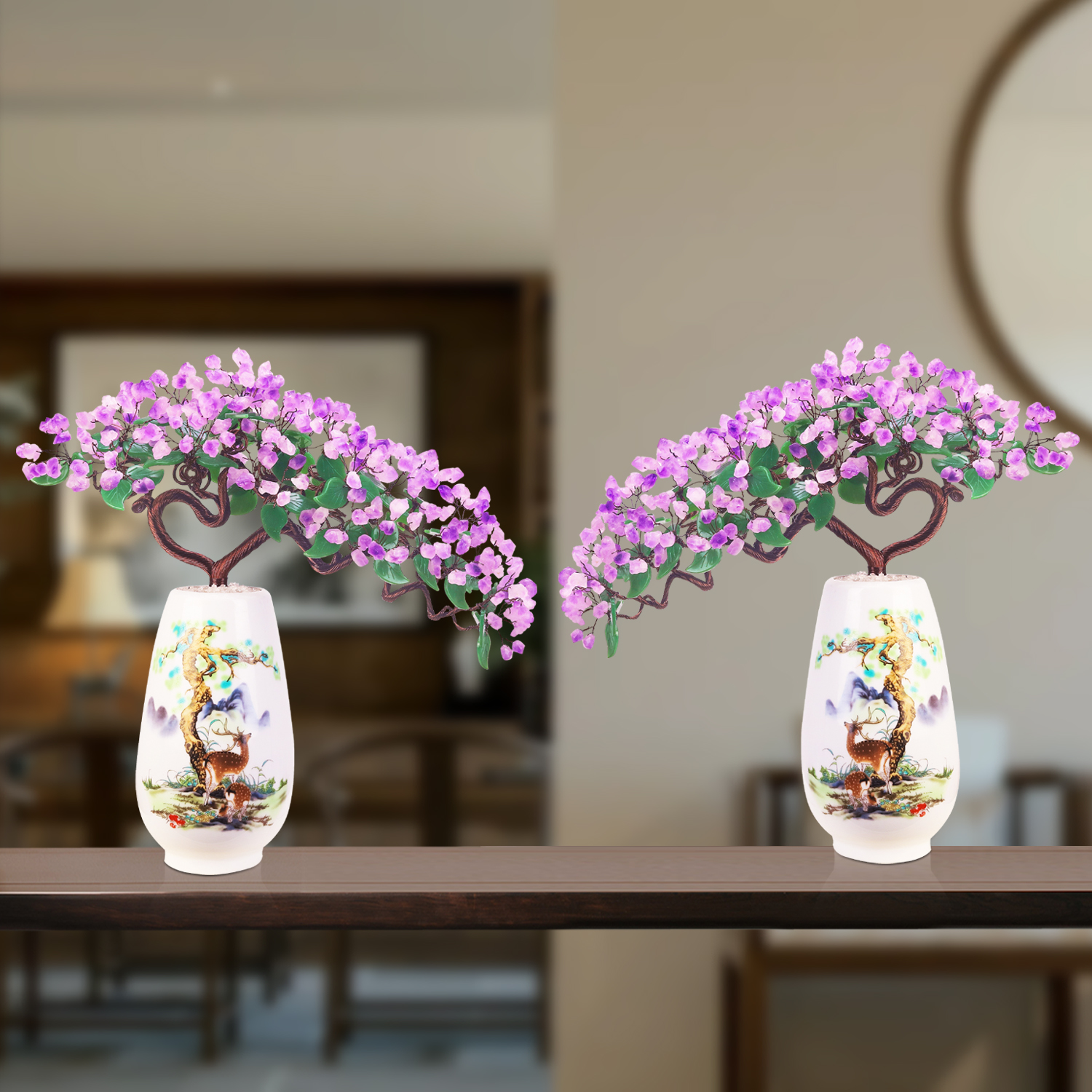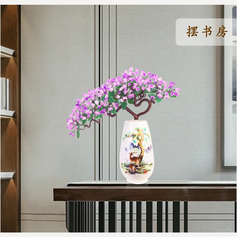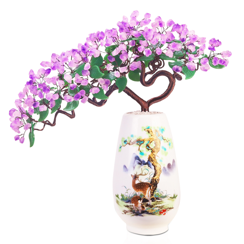 天然紫水晶发财树茶几客厅玄关装饰招财树摇钱树乔迁开业办公摆件