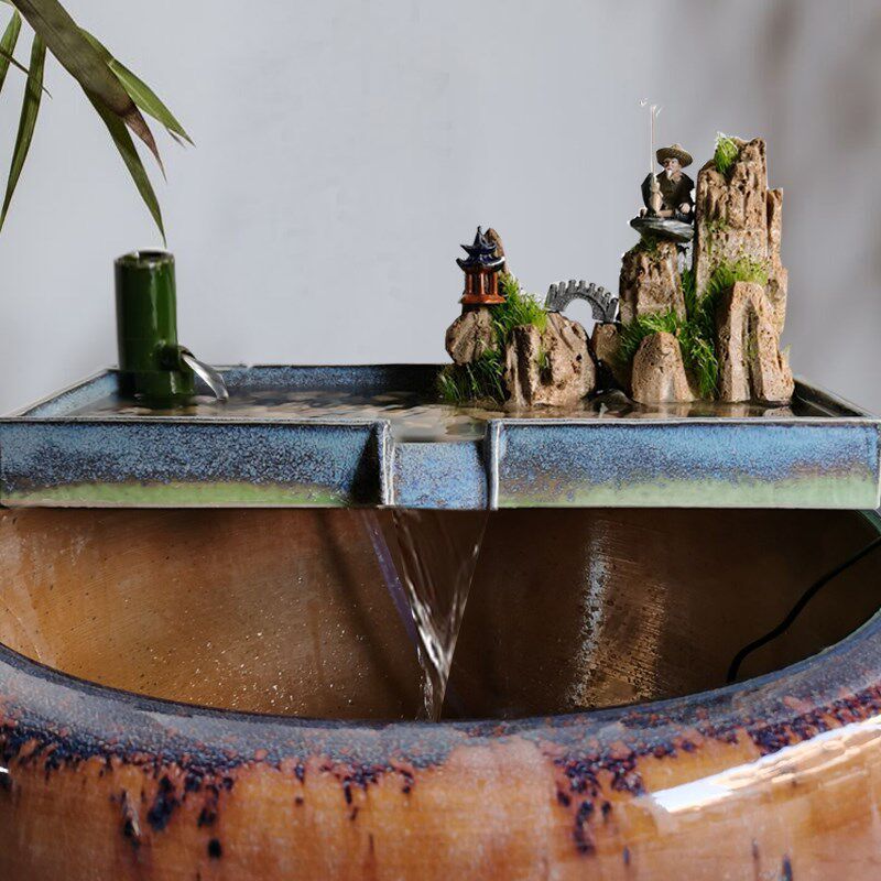 陶瓷鱼缸流水摆件循环过滤养鱼配件大型石磨假山喷泉庭院水景造景