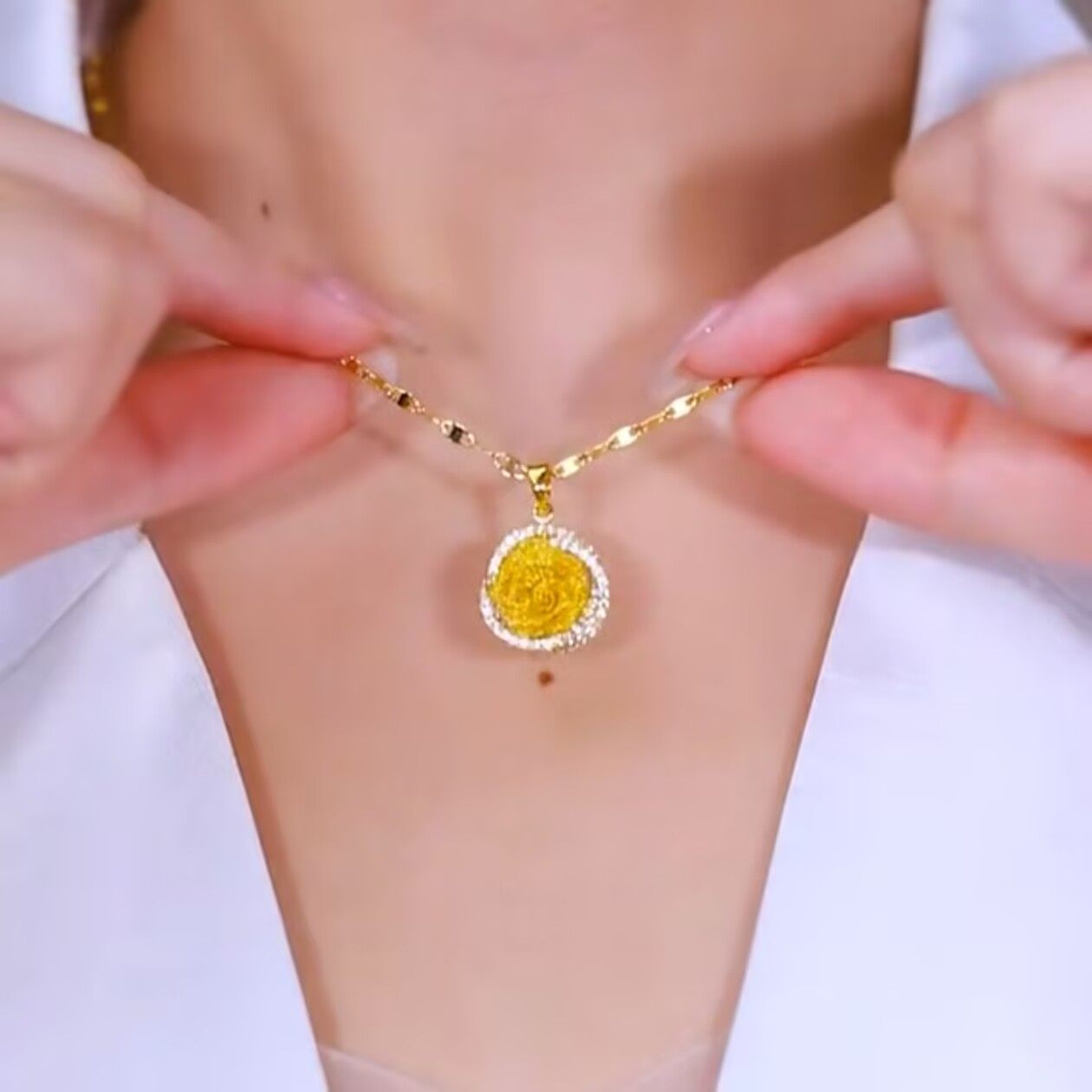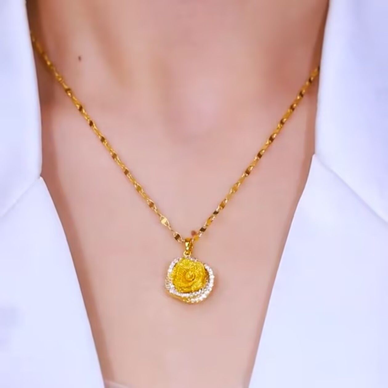 新款金色缠绕玫瑰花吊坠项链网红优雅洋气时尚百搭高档精美项链女