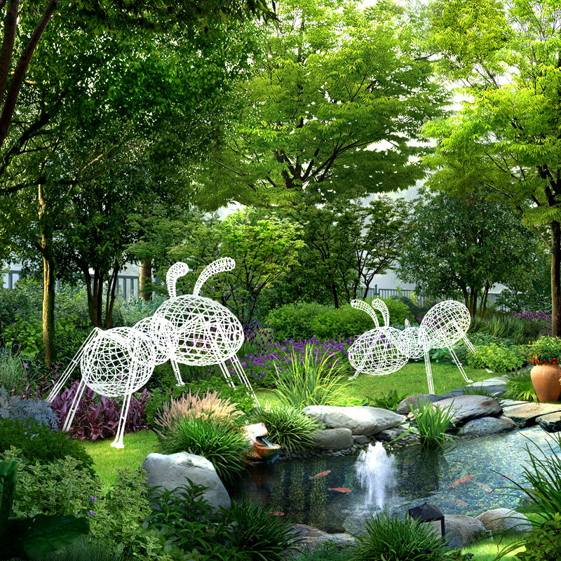 户外园林大型蚂蚁镂空网格不锈钢雕塑落地摆件R幼儿园商场卡通装