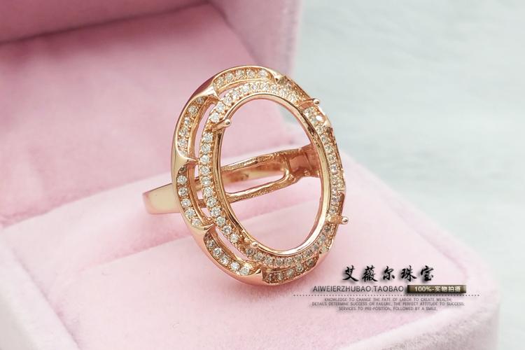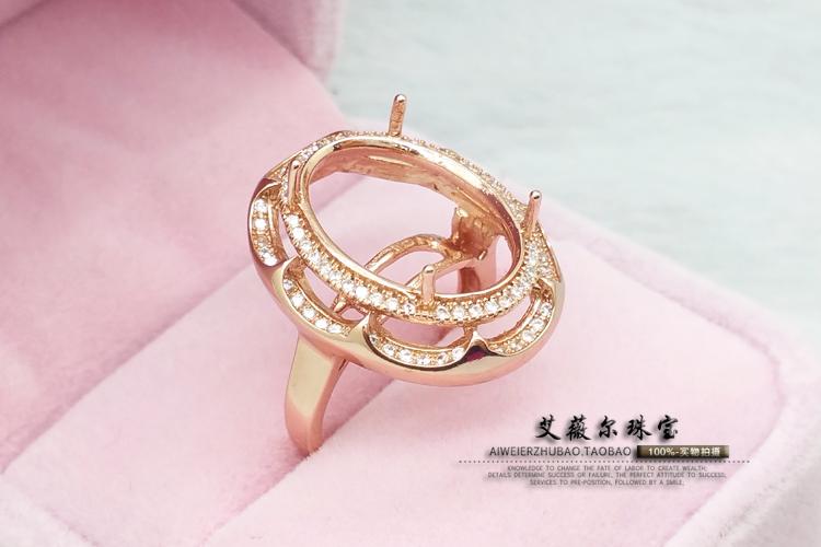 玫瑰金指环戒指女创意925纯银戒指 镶嵌18k金戒托13*18mm活口