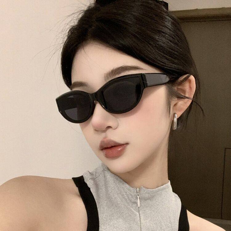 jennie同款gm防紫外线三角猫眼墨镜方圆脸显脸小黑色甜酷高级眼镜