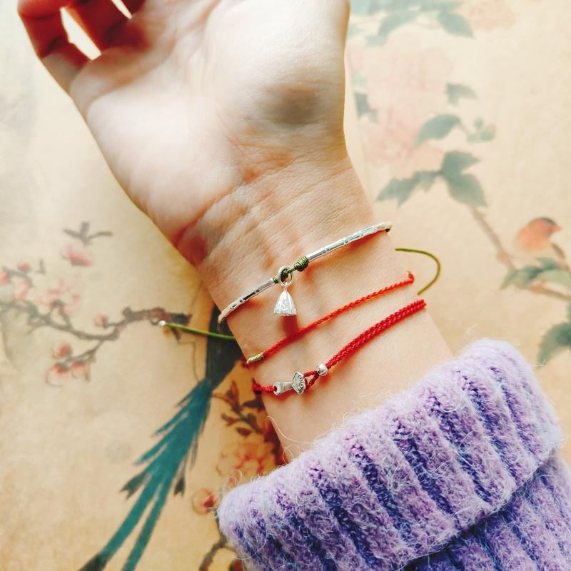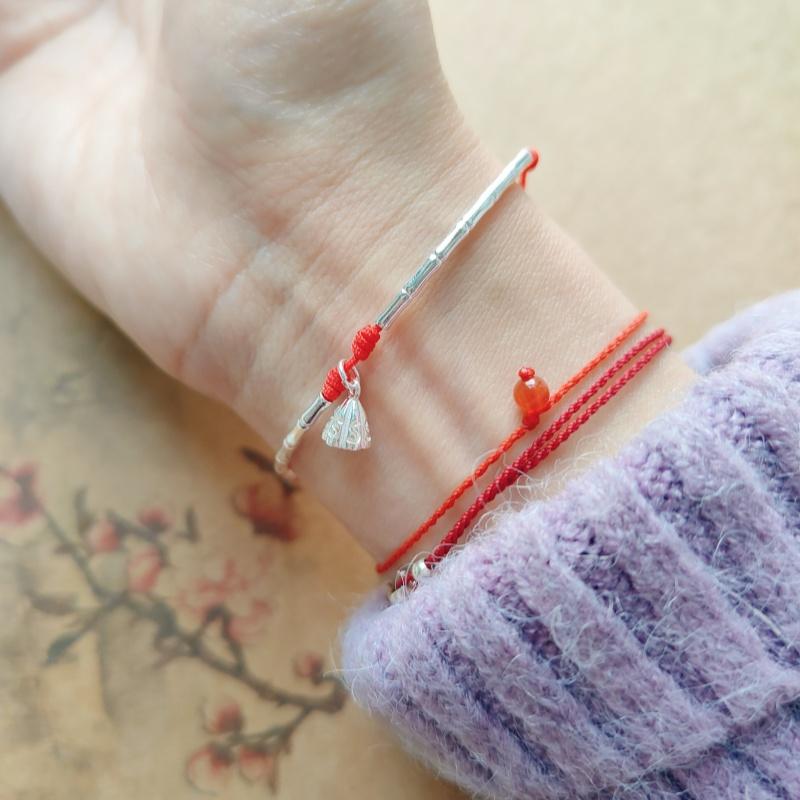 半夏 原创文艺莲蓬925银竹节国风女气质潮百搭编织青绿红清新手绳