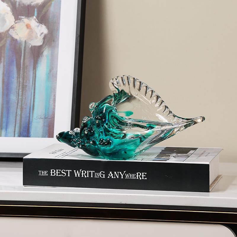 蓝色海螺琉璃摆件简约现代客厅酒店办公室玄关酒柜送礼轻奢装饰品