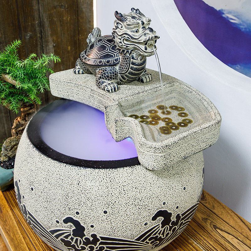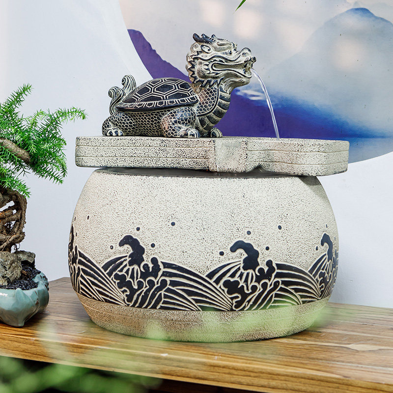 中式流水鱼缸摆件招财龙龟循环水民宿酒店前台办公室装饰开业礼品