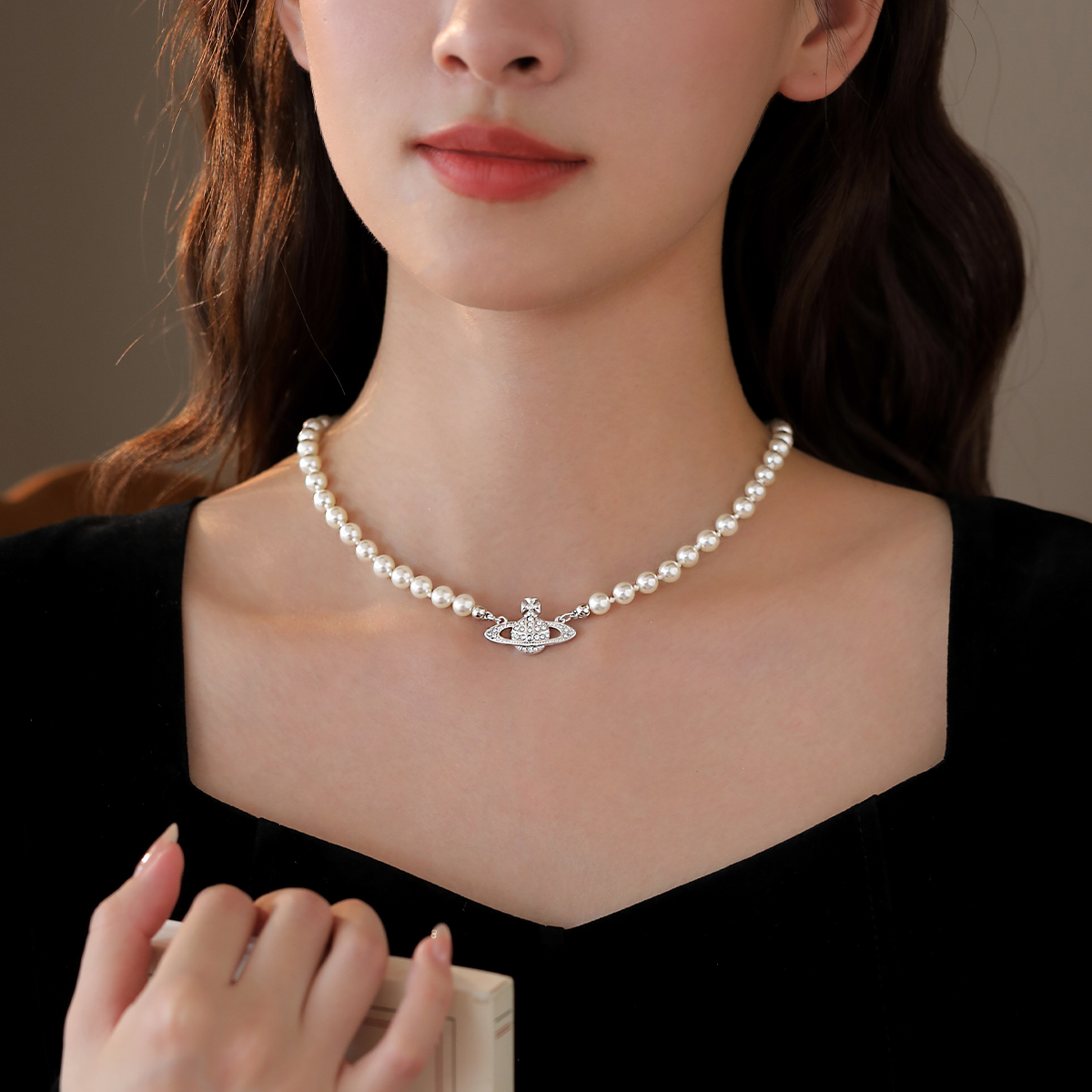 轻奢土星珍珠项链女配饰精致高级感设计锁骨链2025年新款爆款颈链