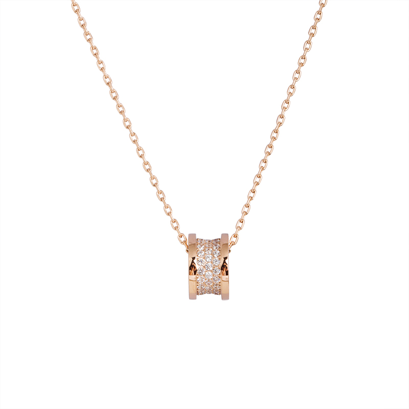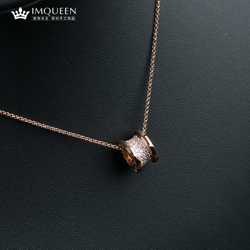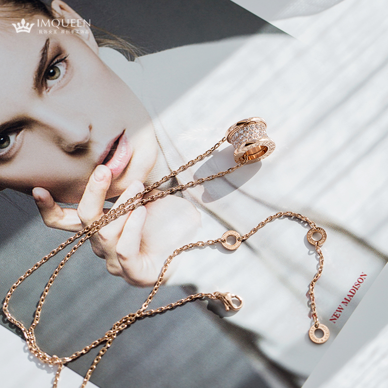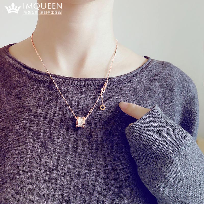 欧美百搭吊坠满钻圆轮项链男女款小蛮腰情侣颈链时尚钛钢配饰