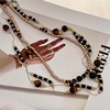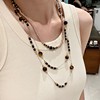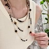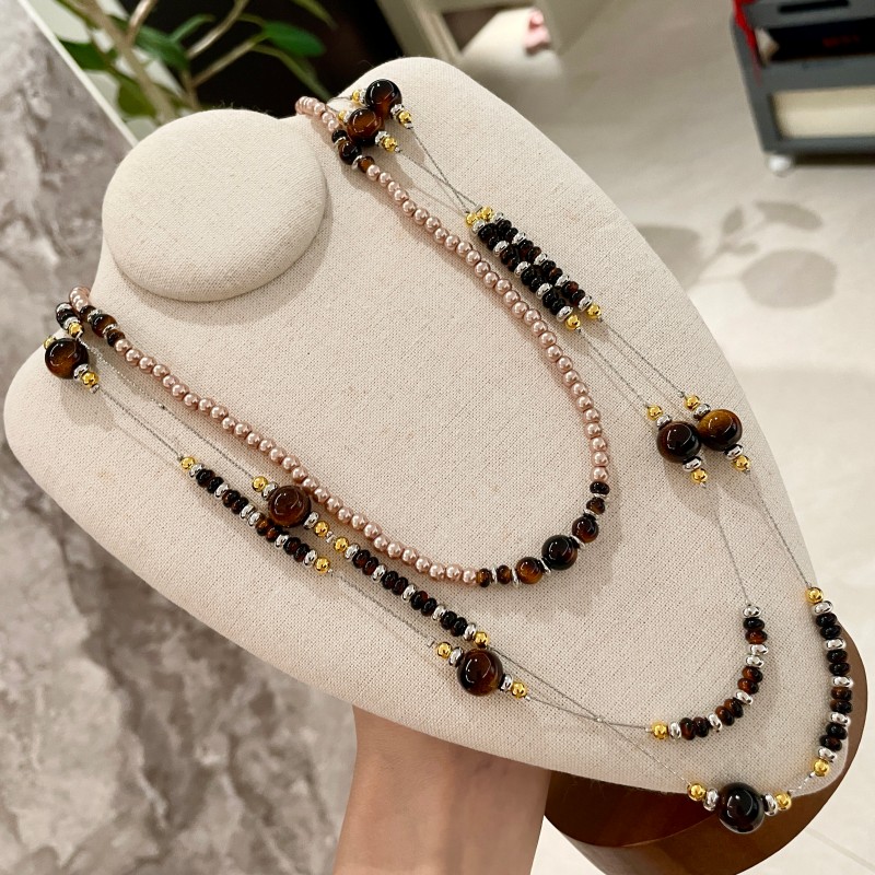琥珀流光中古vintage多层虎眼石珍珠项链长款珍珠毛衣链配饰颈链