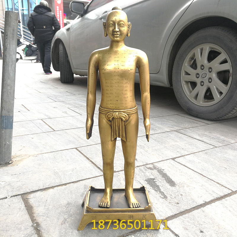 速发纯铜针灸人穴位经络人体铜像中医教学模型 家居书房摆设 铜雕