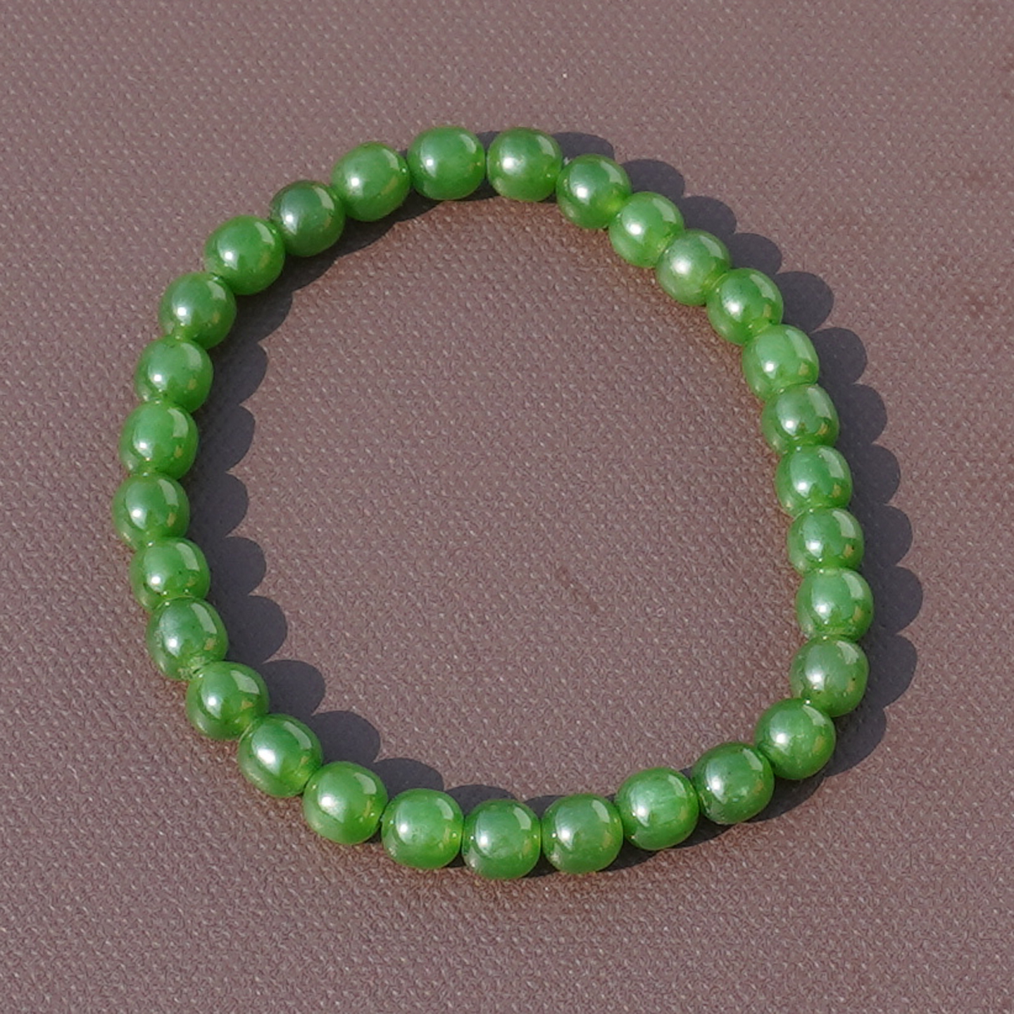 劲爆价方言和田玉精品特色俄罗斯阳绿色碧玉6mm老型珠手串手链A6