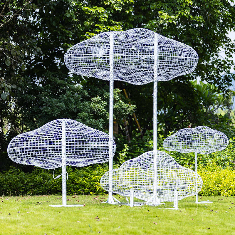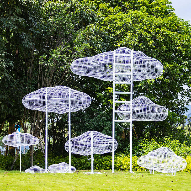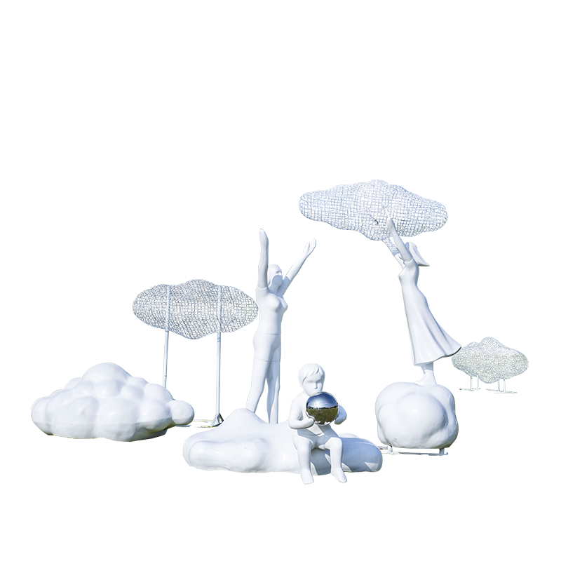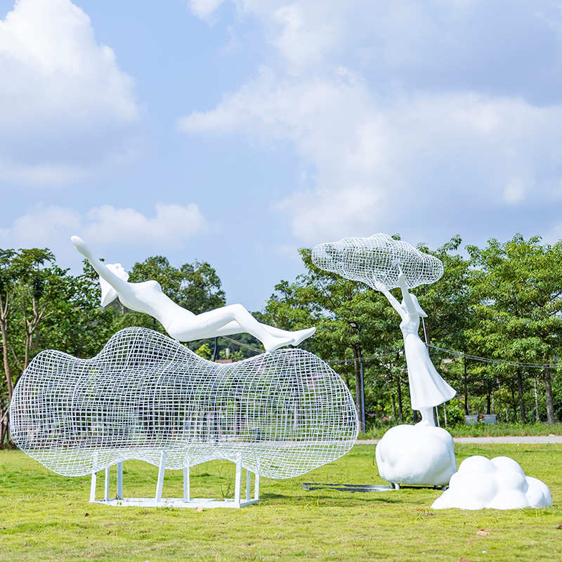 户外铁艺不锈钢镂空云朵雕塑玻璃钢人物摆件公园林小区售楼部装饰