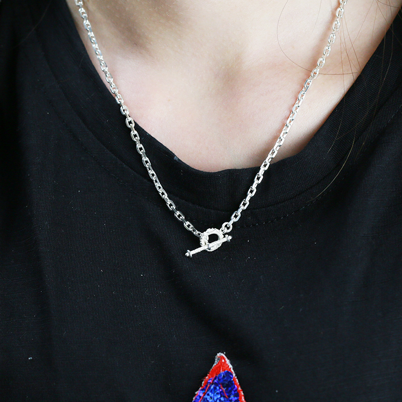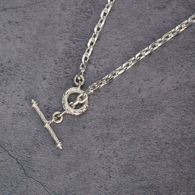 牛钝精工 Legend吉原直唐草OT扣项链925纯银细角太角链花蔓银项链