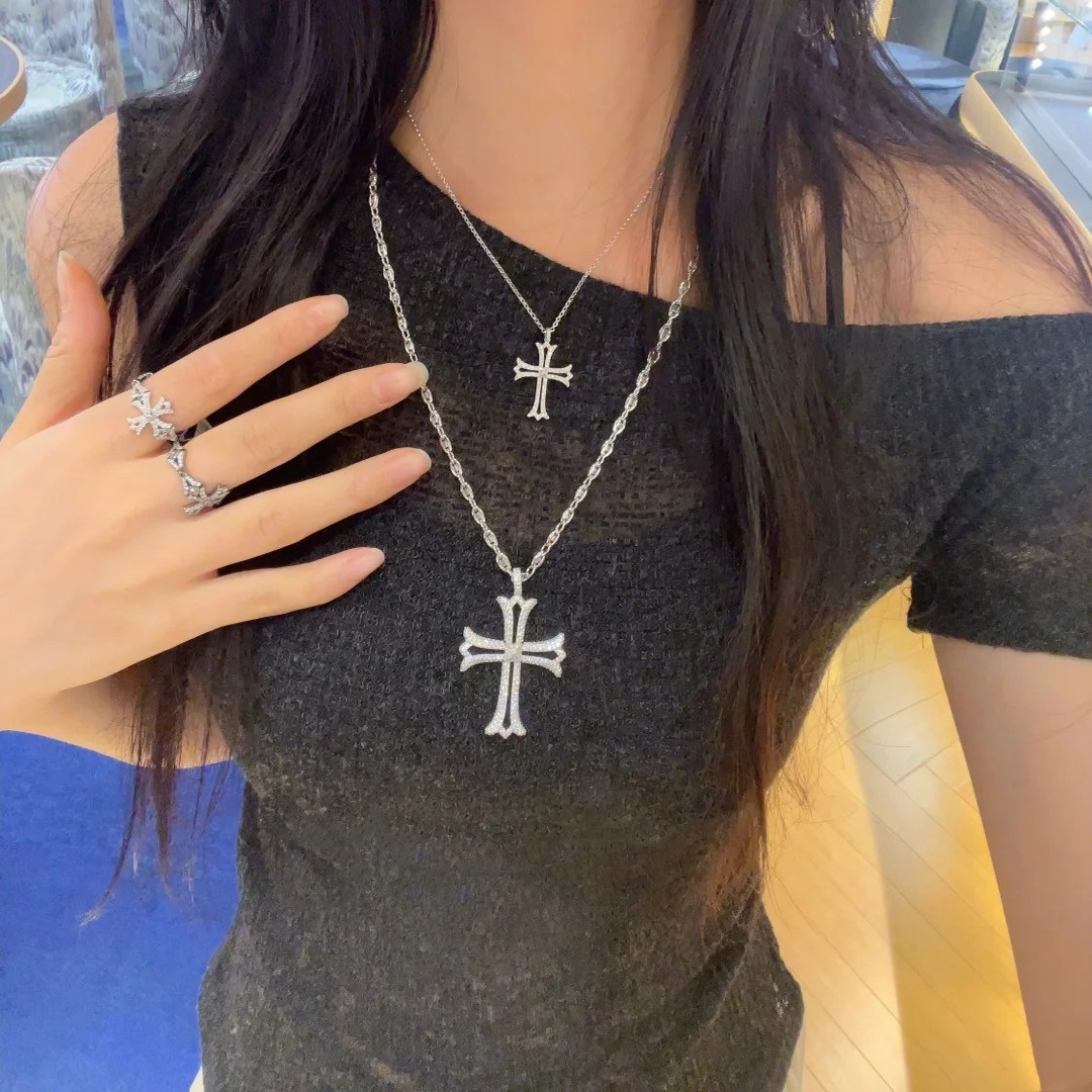 九月新品十字架项链女精致个性锁骨链耳环轻奢毛衣链送女友礼物