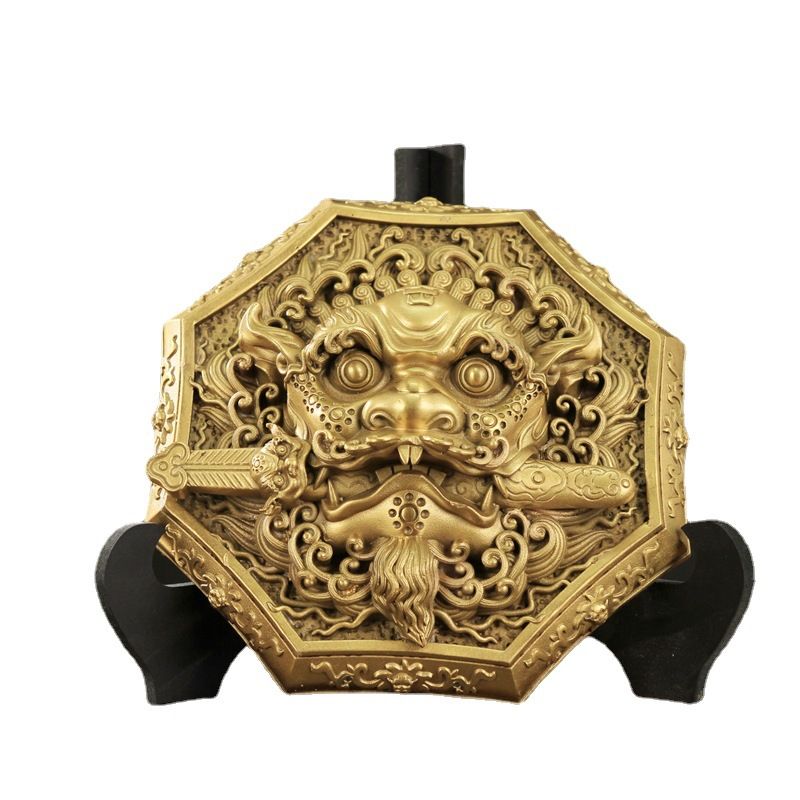 狮咬剑门对门破解入户门对着电梯口化解瑞兽狮子吞剑铜牌纯铜挂件