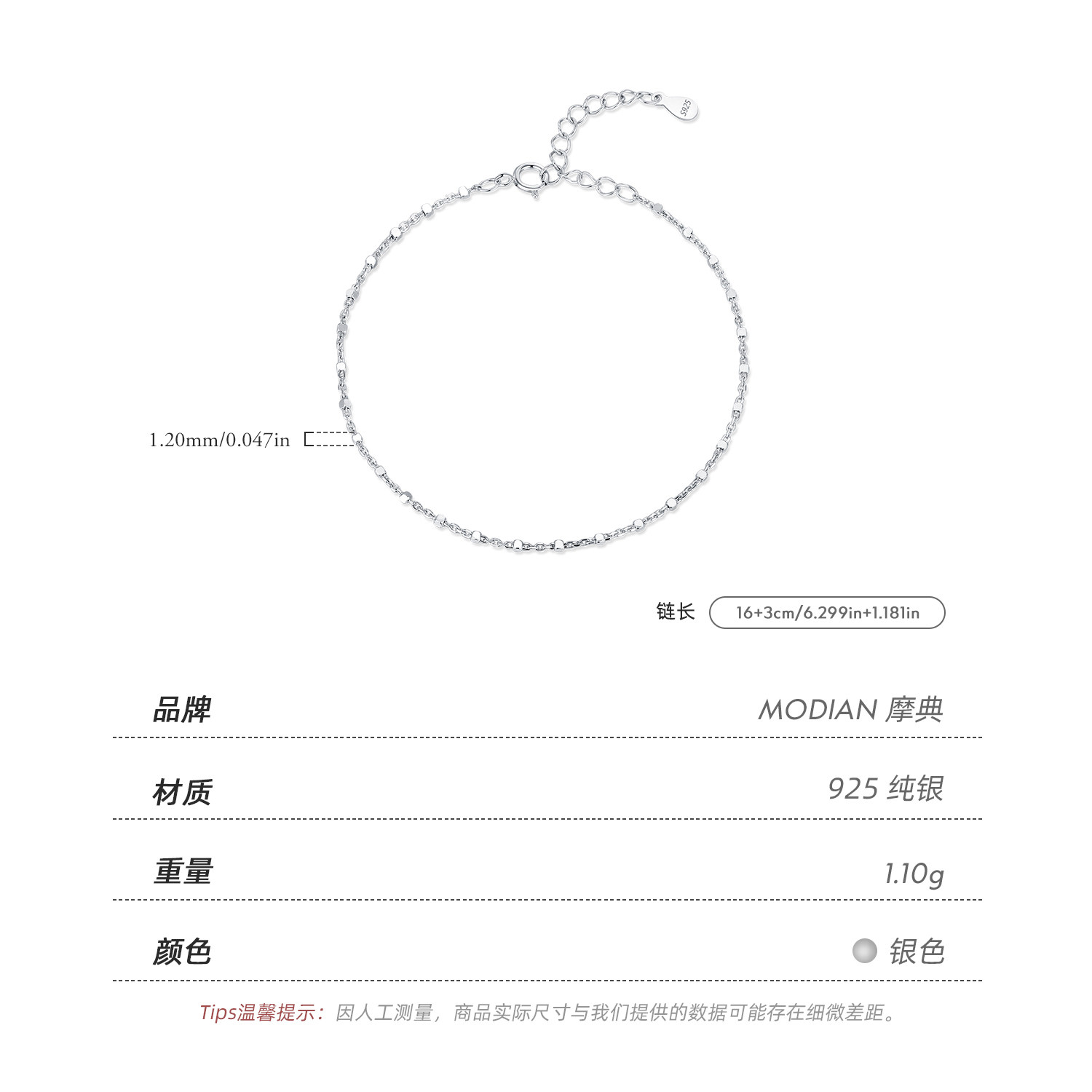 MODIAN摩典S925纯银小众设计豆豆链手链女简约细款百搭冷淡风手饰