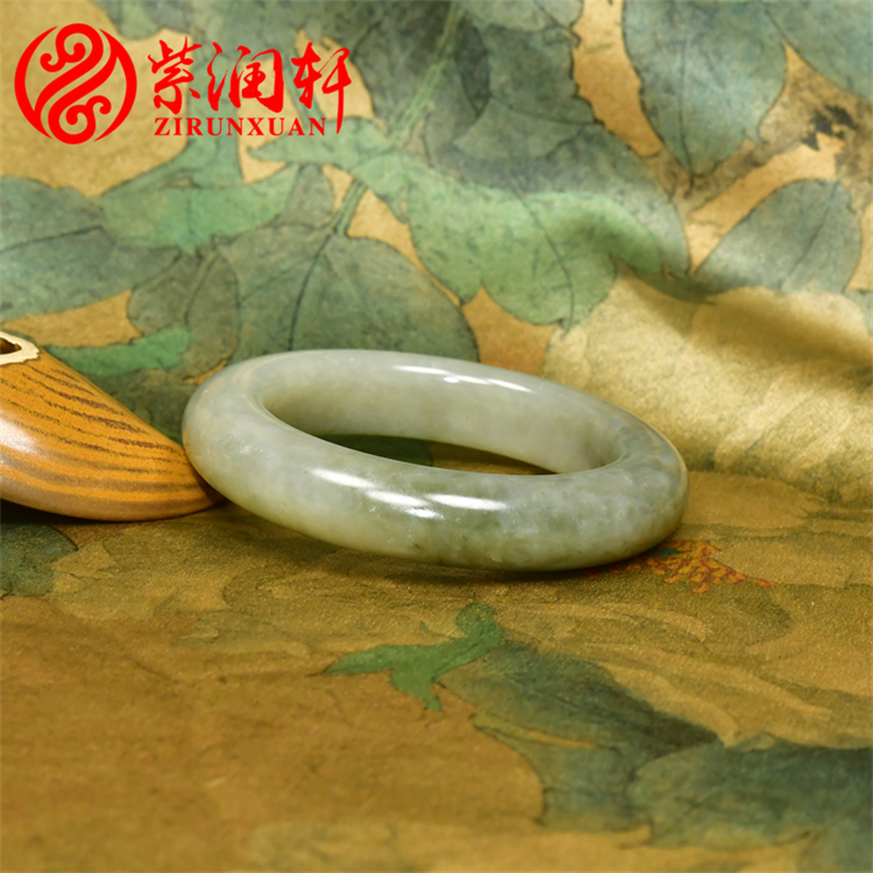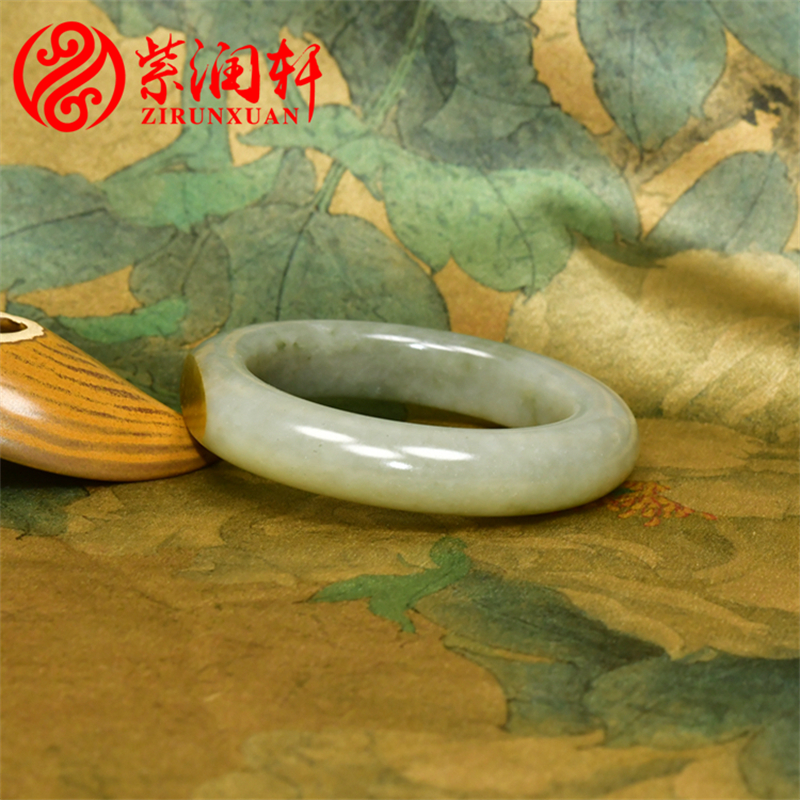 紫润轩新疆和田玉手镯籽料青白55MM哑光洒金皮泥鳅背素雅玉镯收藏