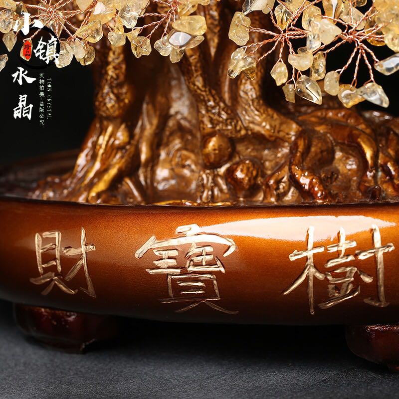 天然黄水晶摇钱树招财家居客厅玄关店铺公司乔迁开业送礼品摆件