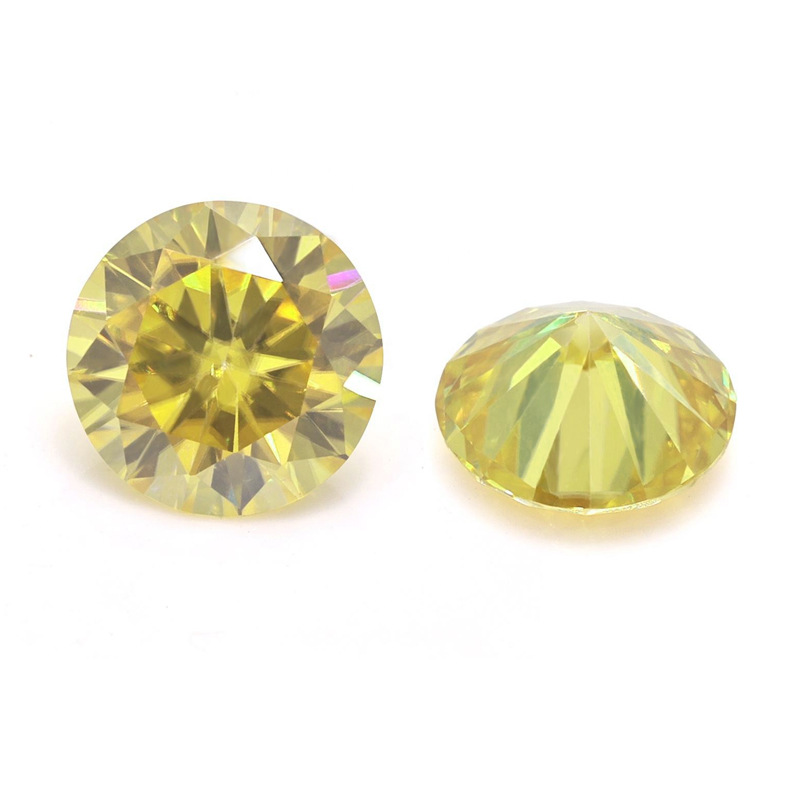 黄色圆形优质彩色莫桑石裸石配GRA证书黑卡腰码源头工厂现货批发