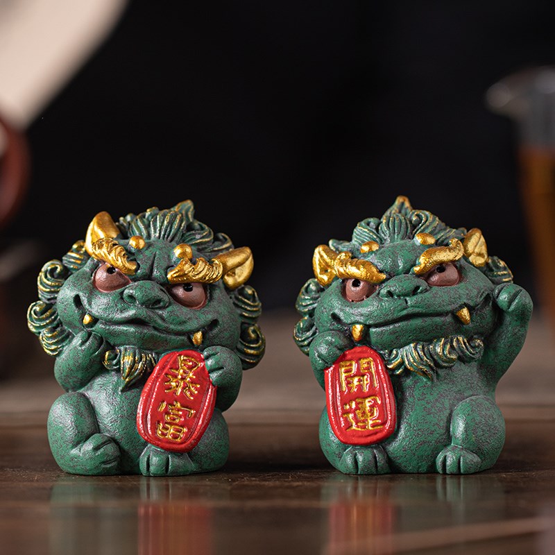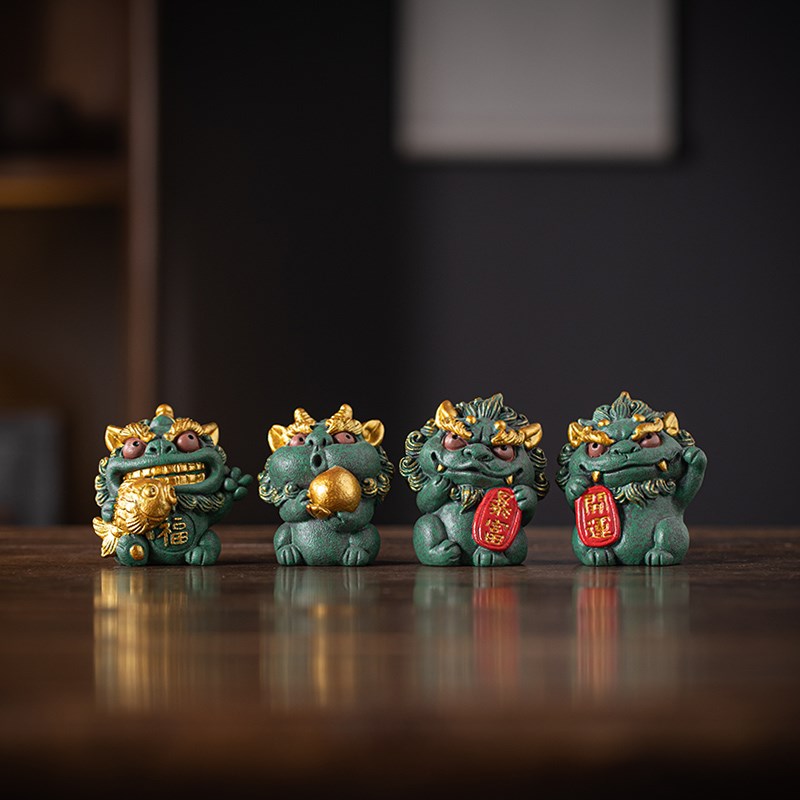 创意瑞兽小貔貅福鱼寿桃摆件可爱暴富开运风狮爷家居客厅桌面装饰
