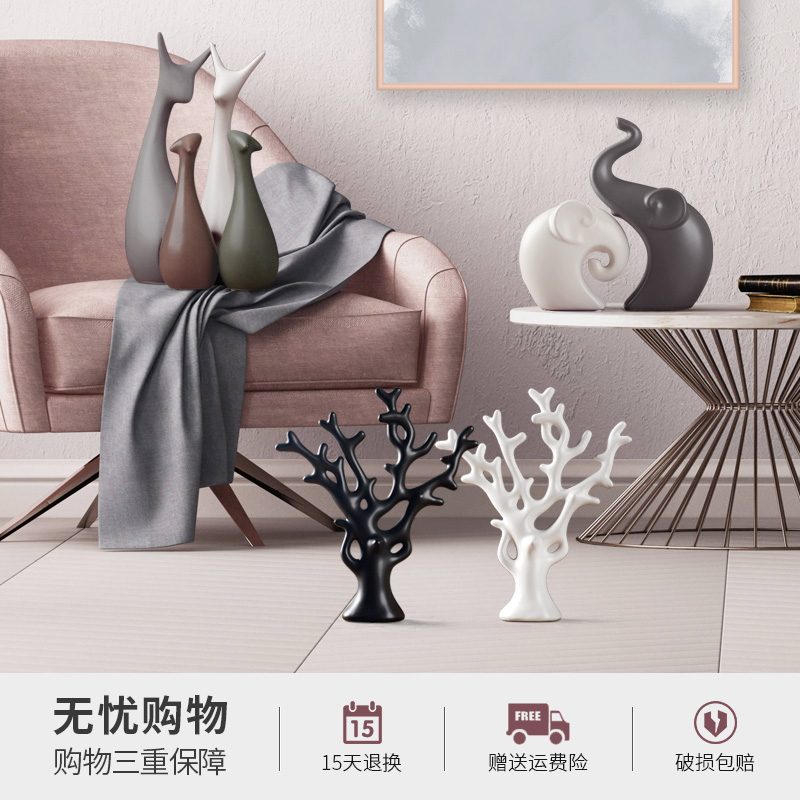 北欧风格家c居餐桌创意陶瓷小鹿摆设电视柜玄关客厅酒柜装饰品摆
