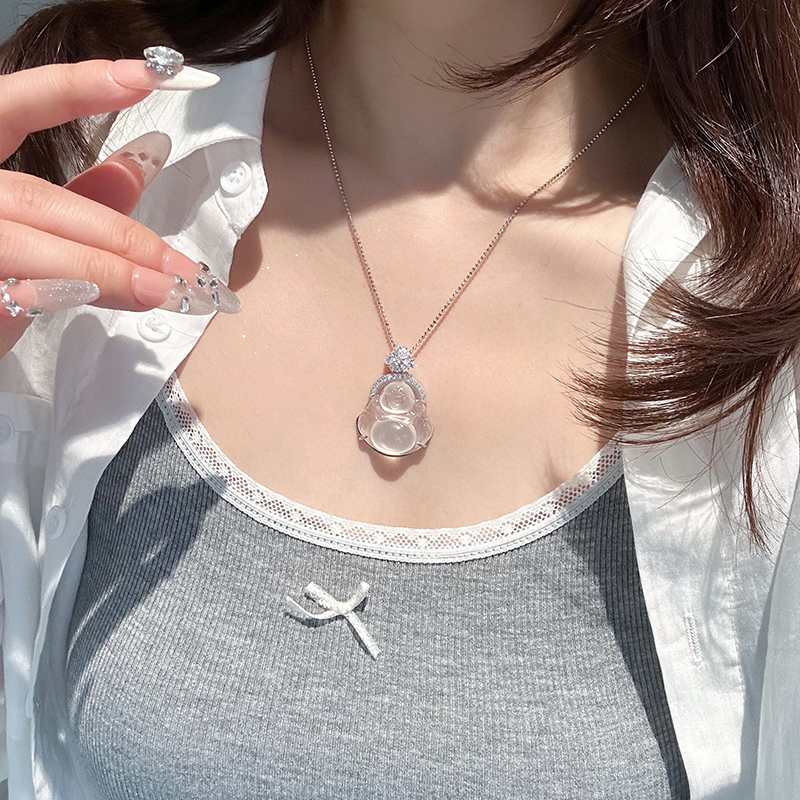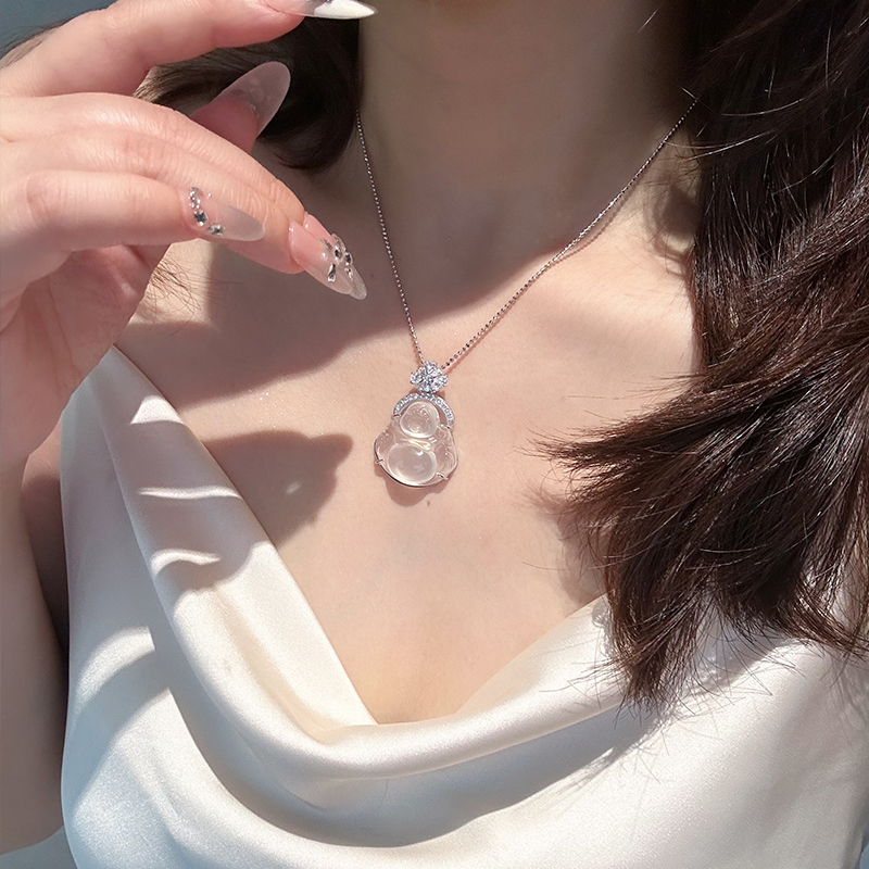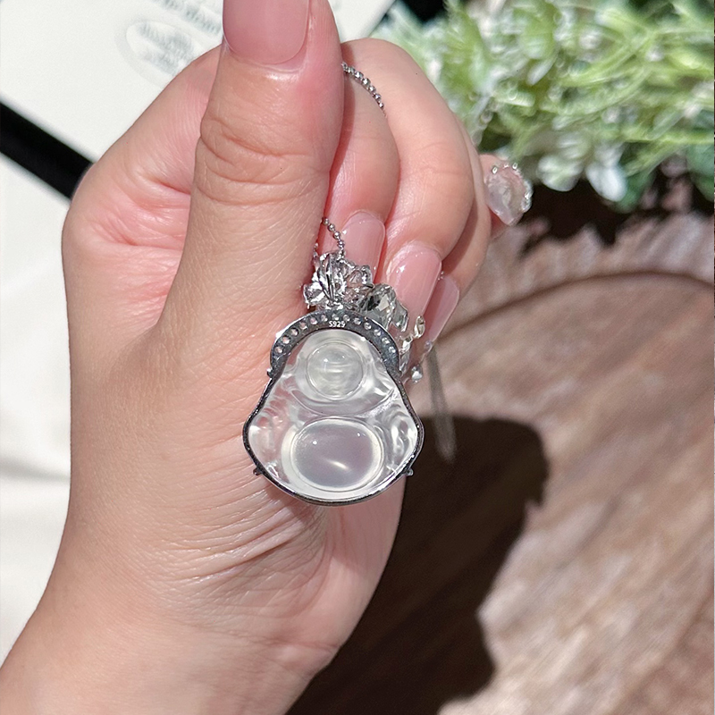 冰种天然玉髓佛公吊坠项链女款玉坠挂件锁骨链女友高级情人节礼物