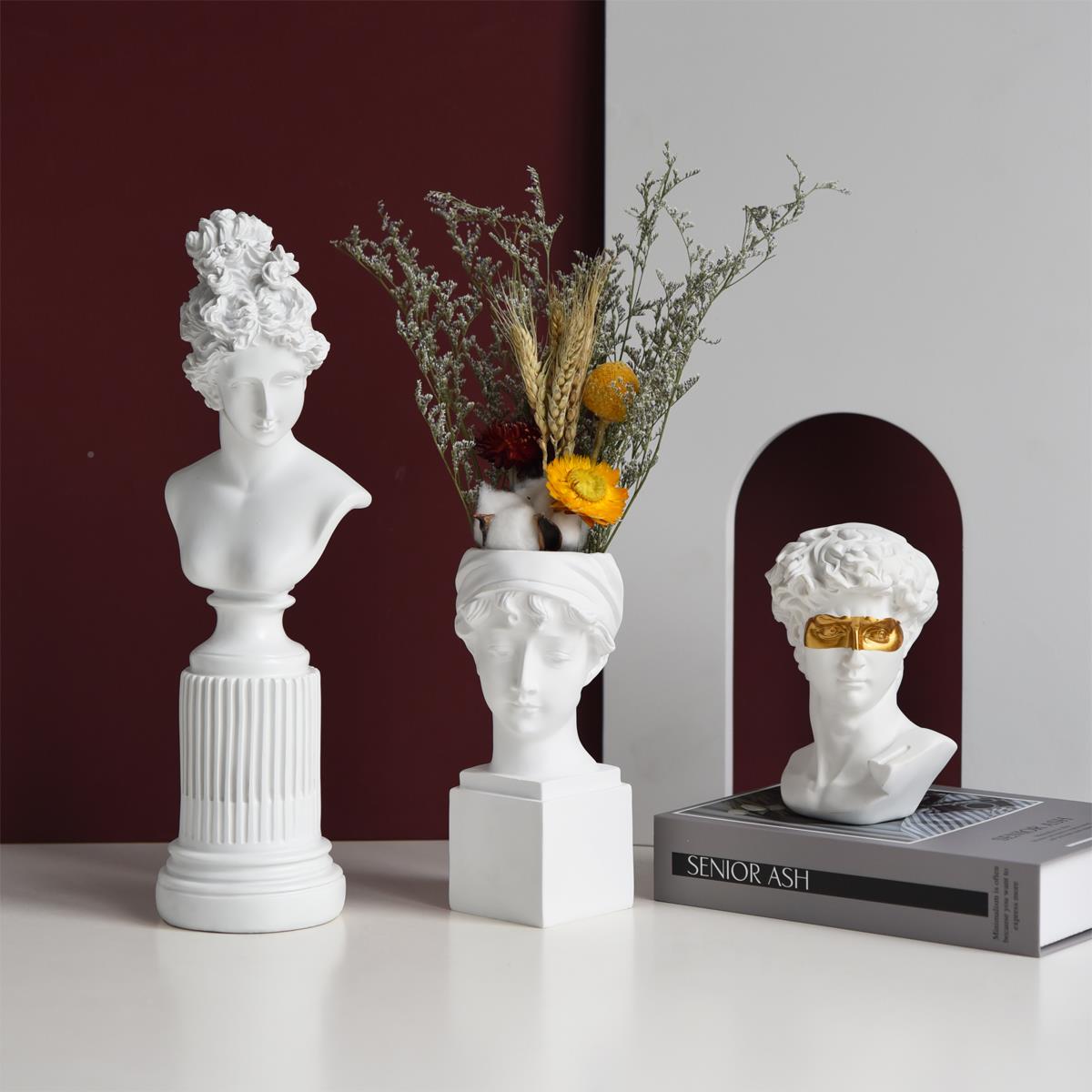 ins北欧风仿石人物雕雕塑像客厅柜玄关膏桌摆挪威森林办公室书房