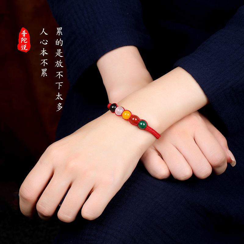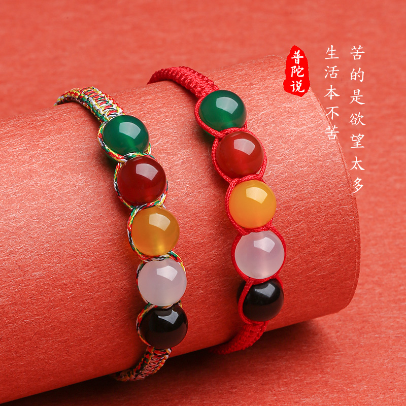 速发五行玛瑙手串红绳手链手工编织五彩手绳男款