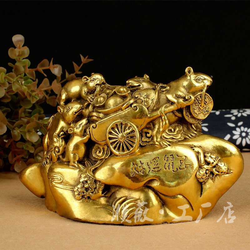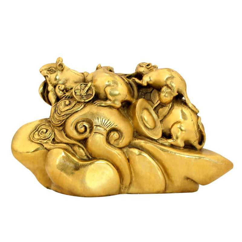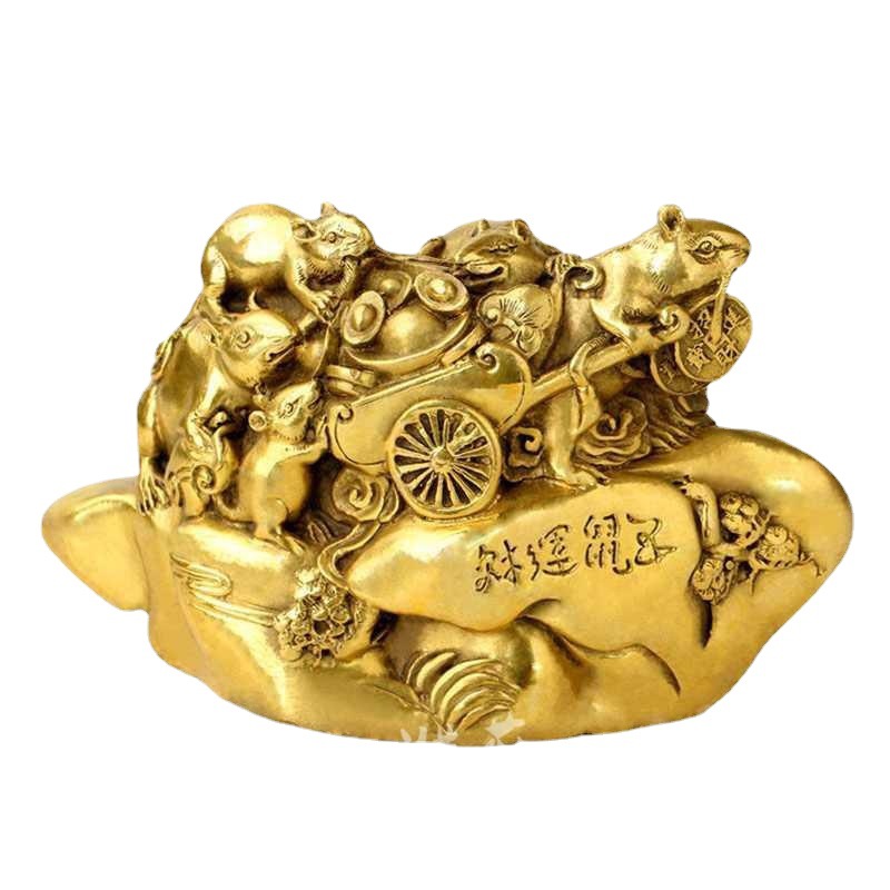 黄铜五鼠摆件生肖鼠礼品黄铜器金属工艺品铜W9009动物家居通用园