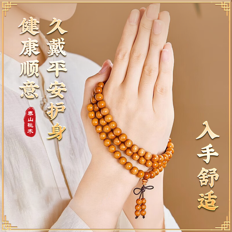 天然野生老桃木手串108颗佛珠男女款护身符木质正品官方旗舰店
