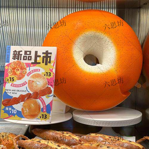 仿真贝果面包模型烘焙店招牌发光灯箱门头装饰摆件玻璃钢雕塑定制