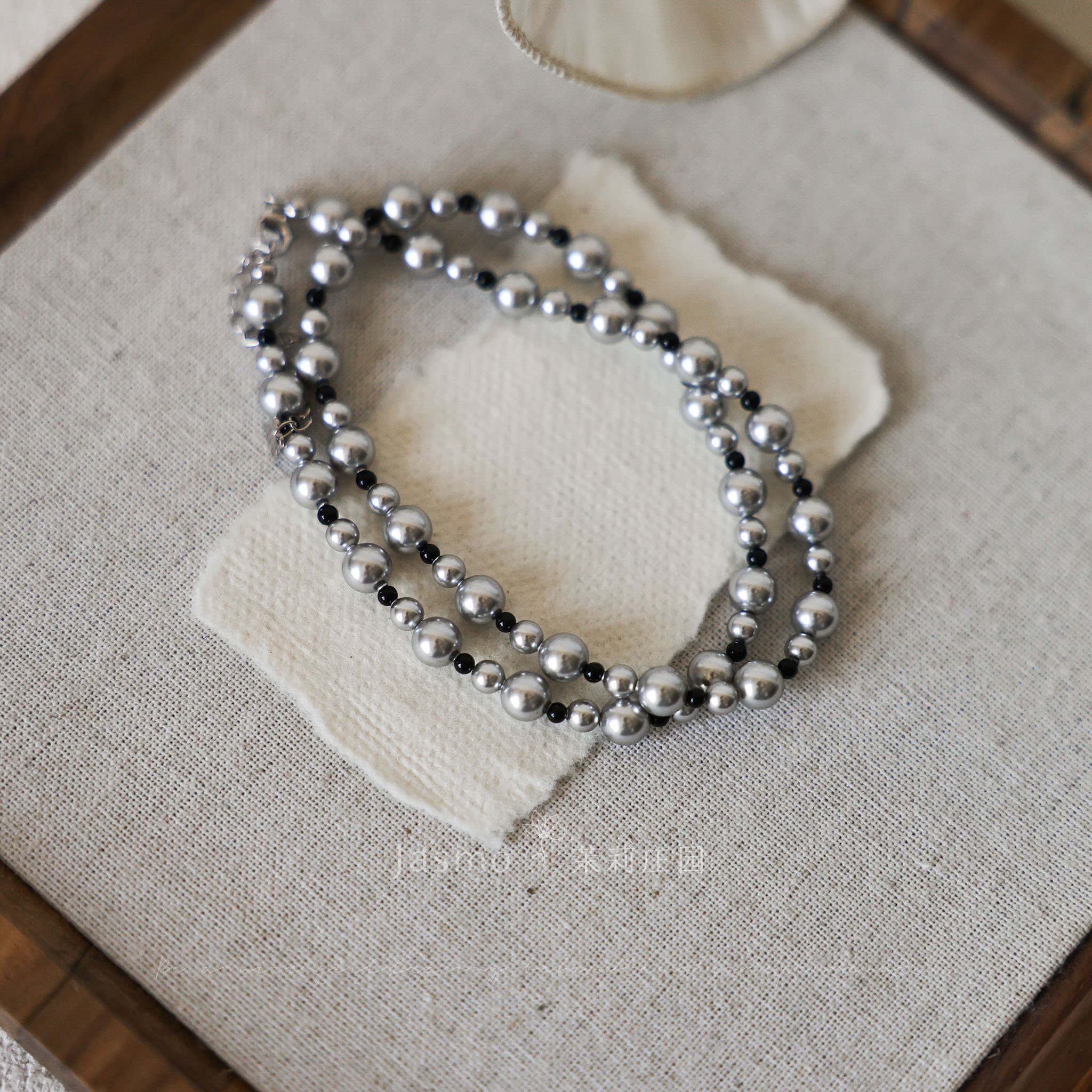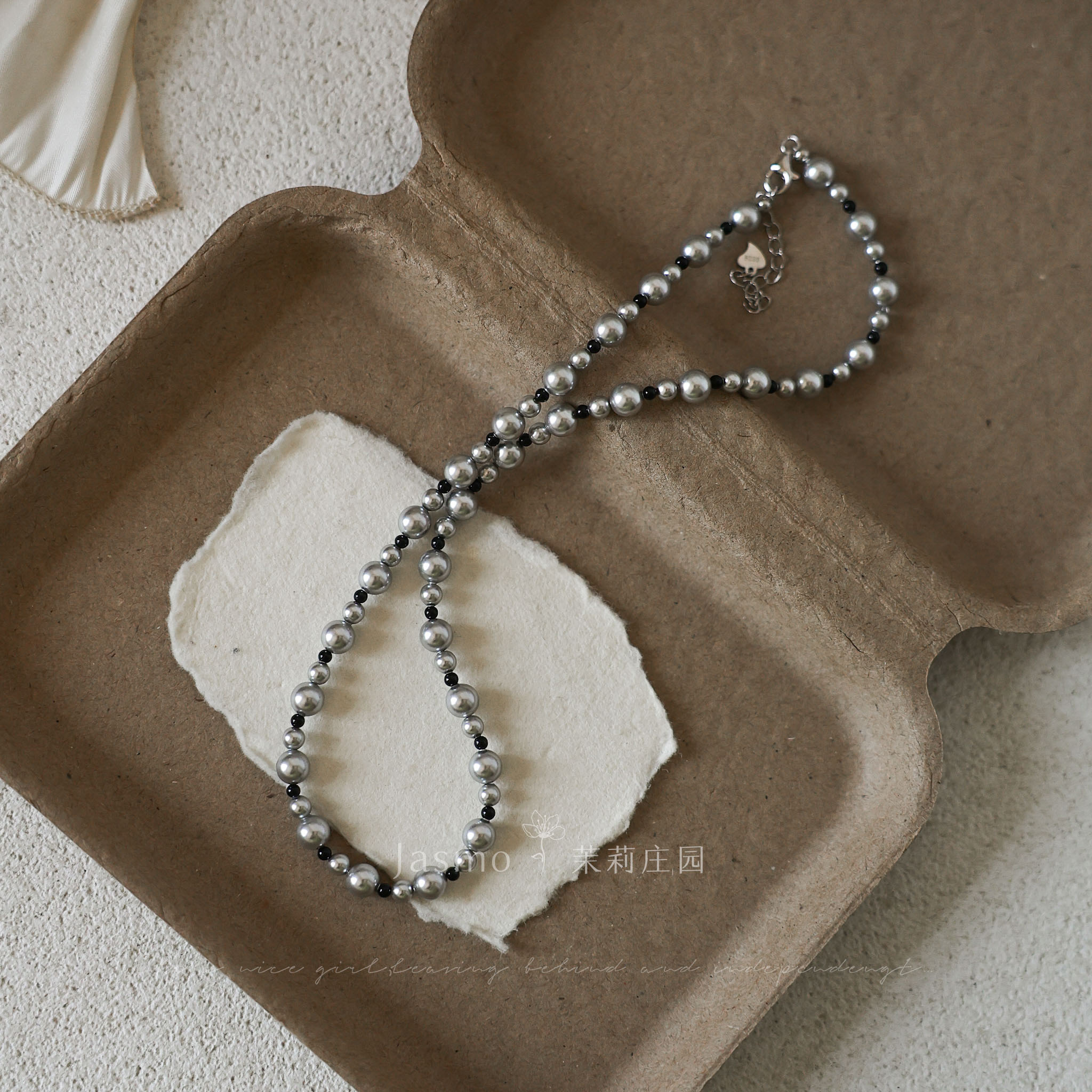 星轨)JASMO原创设计灰色施家珍珠项链黑玛瑙高级感串珠锁骨链女