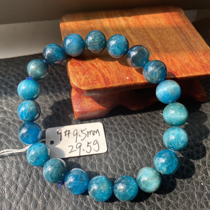 天然蓝磷灰手链男女款开发潜能智慧一物一图蓝色手串磷灰石水晶