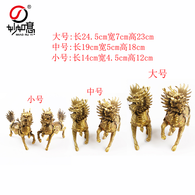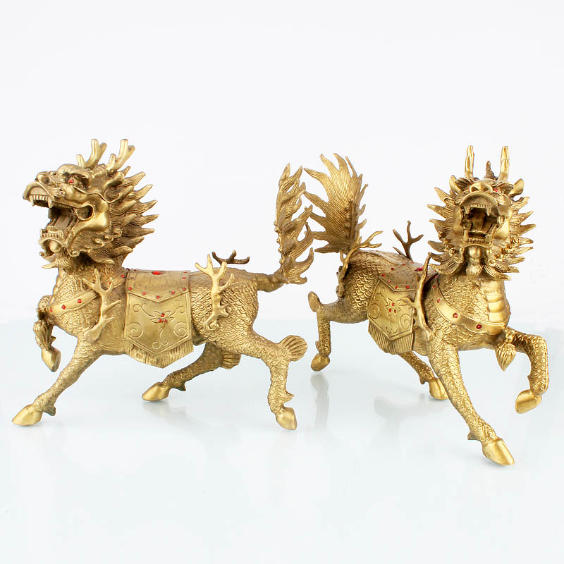 麒麟摆件一对纯黄铜大号火麒麟客厅家用店铺办公室家居装饰工艺品