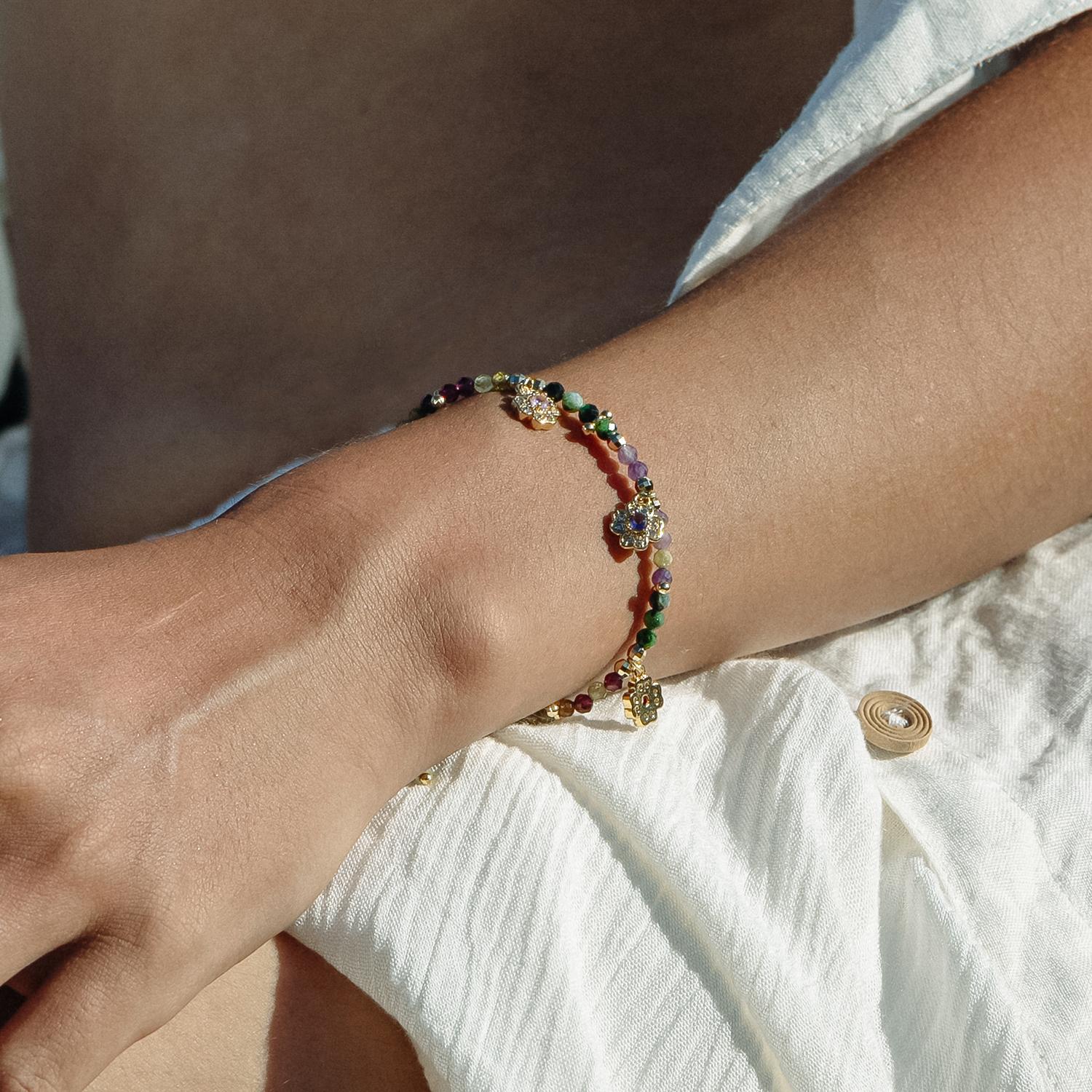 Haibays 2025年新款幸运四叶草天然石混彩手链女叠戴手饰闺蜜礼物